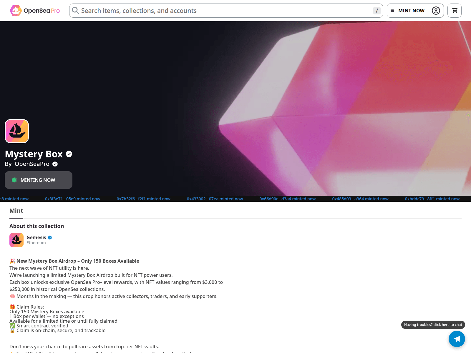 The site displays a page titled “OpenSea.io”.