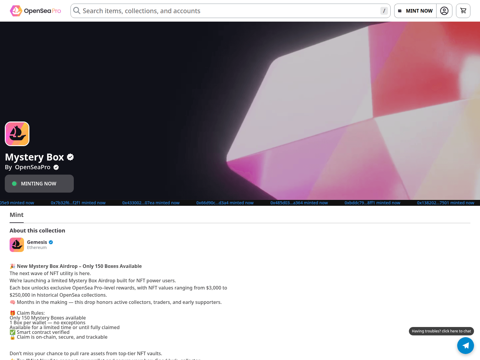 The site displays a page titled “OpenSea.io”.