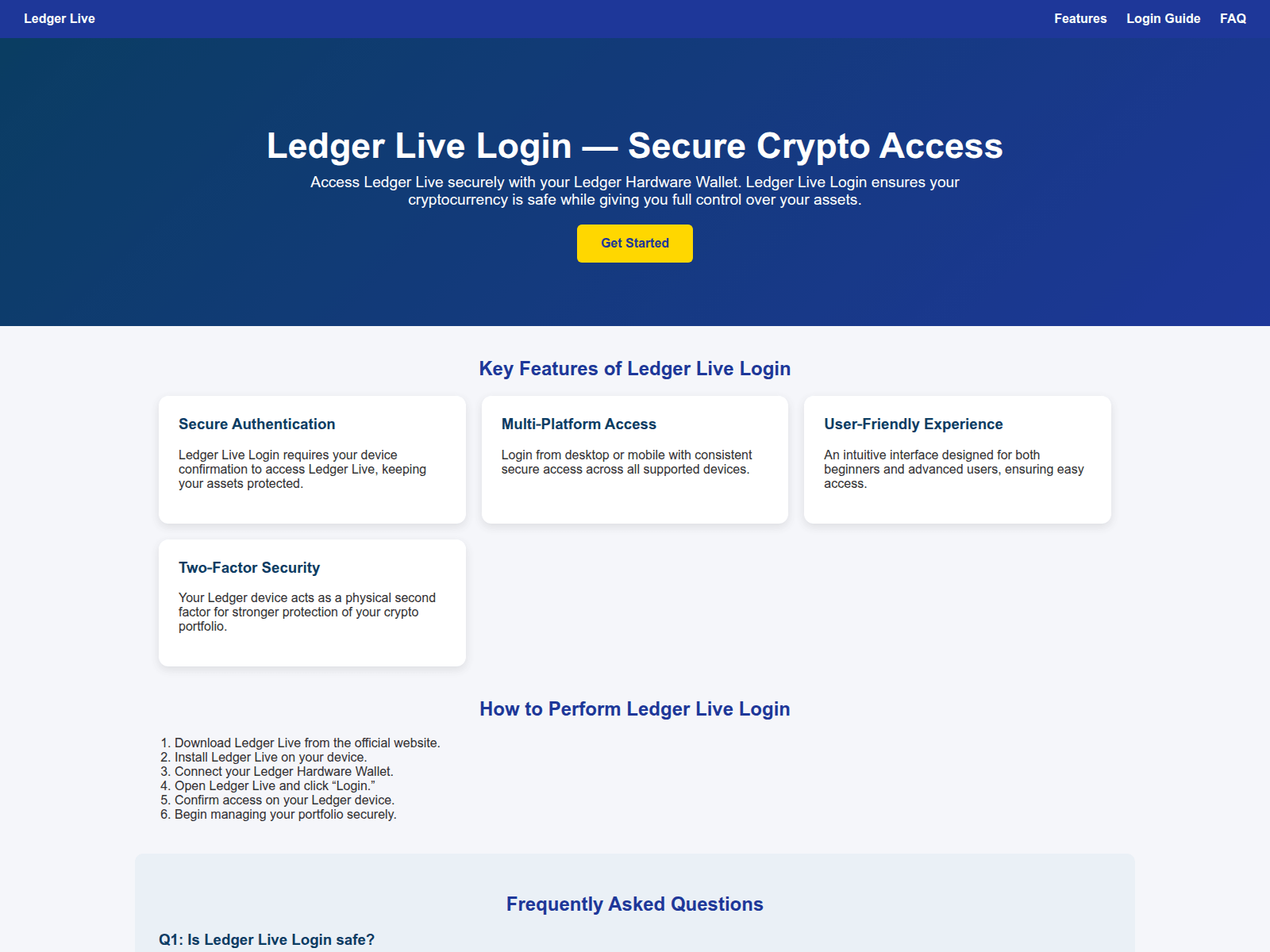 The site displays a page titled “Ledger Live Login | Secure Crypto Access”, which may be designed to impersonate Ledger.