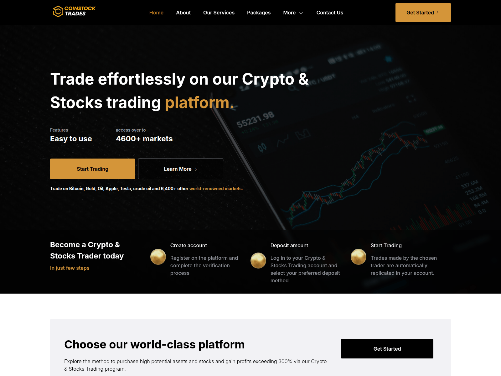 Forensic screenshot of coinstocktrades.net showing the phishing page layout