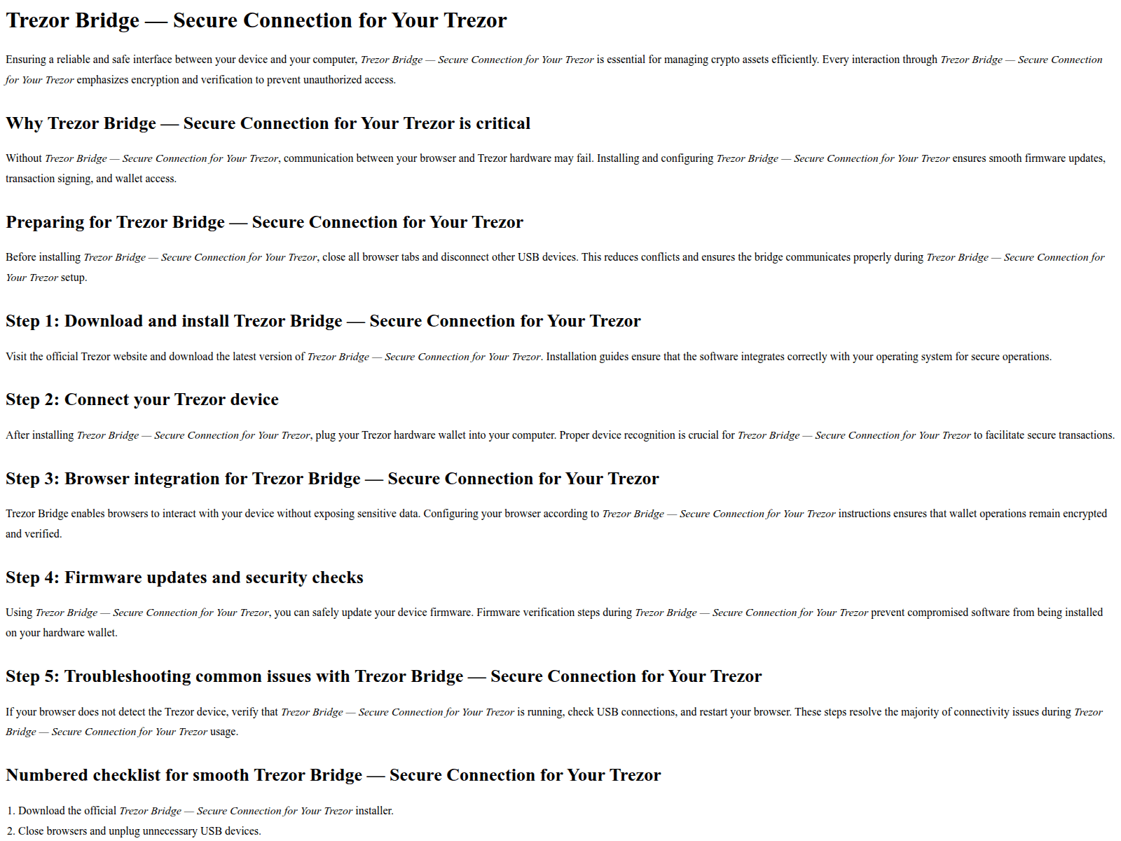 “Trezor Bridge — Secure Connection for Your Trezor”