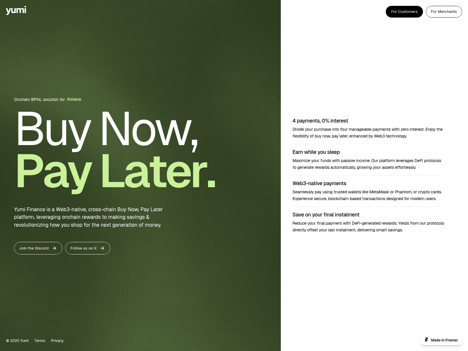 The site displays a page titled “Yumi Finance”.