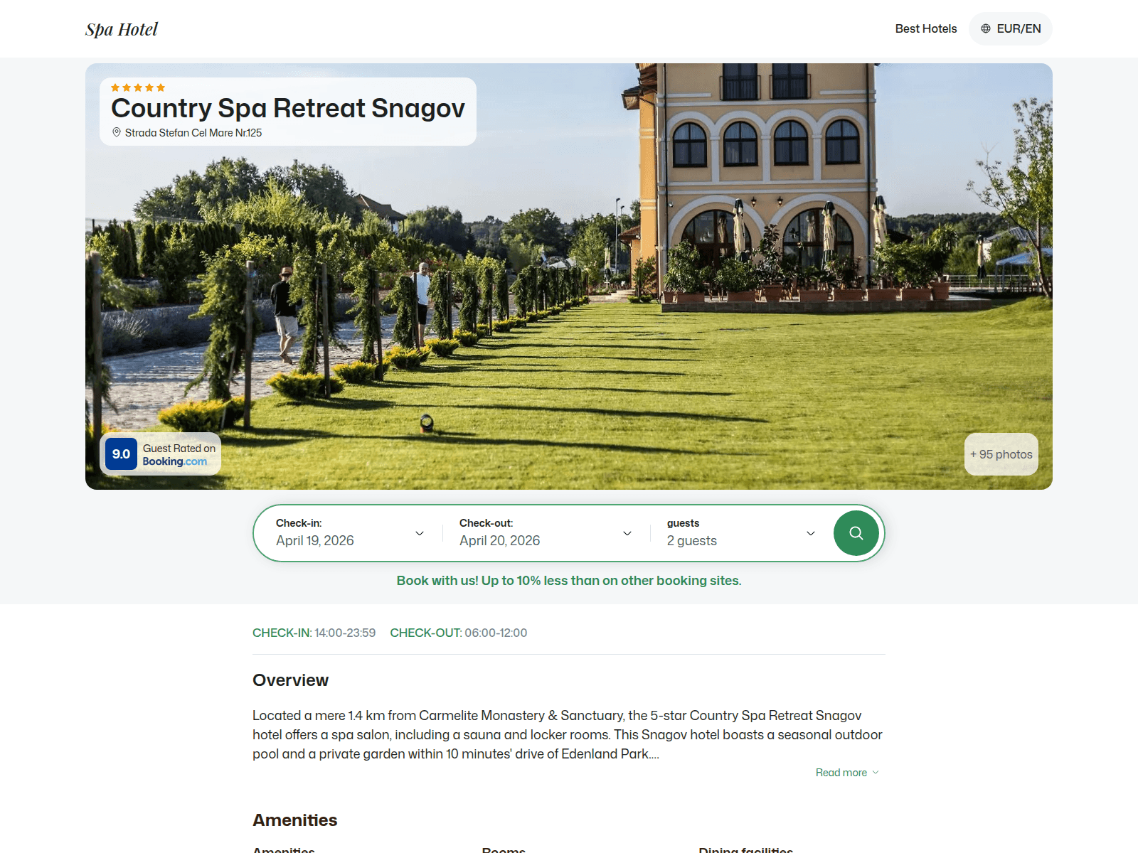 The site displays a page titled “Country Spa Retreat Snagov - Snagov, Romania”.