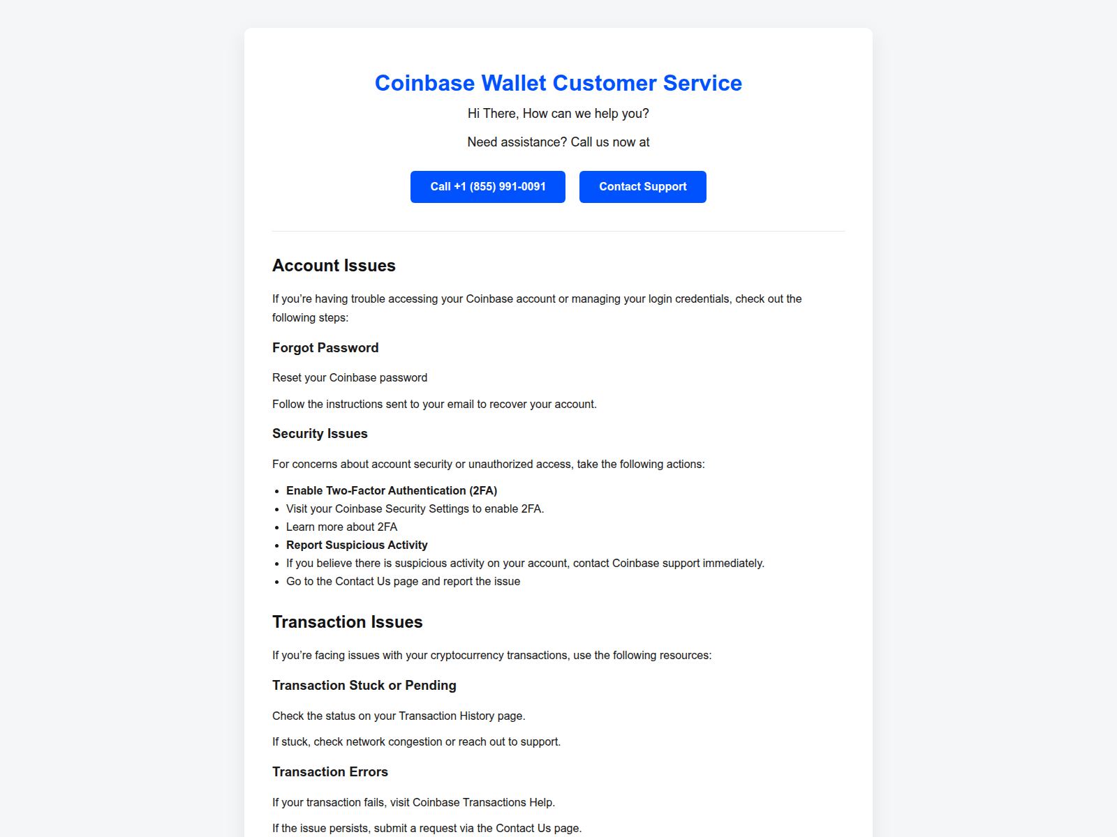 The site displays a page titled “Coinbase Wallet Customer Service”, which may be designed to impersonate Coinbase.