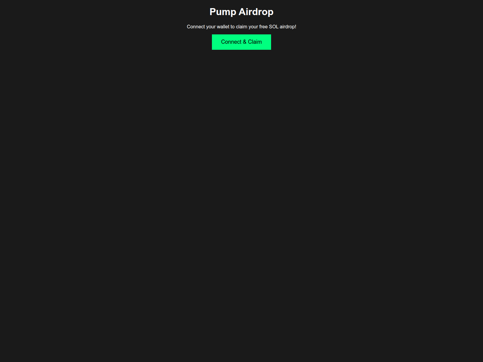 The site displays a page titled “Pump Airdrop - Claim Now!”, which may be designed to impersonate Airdrop Scam.