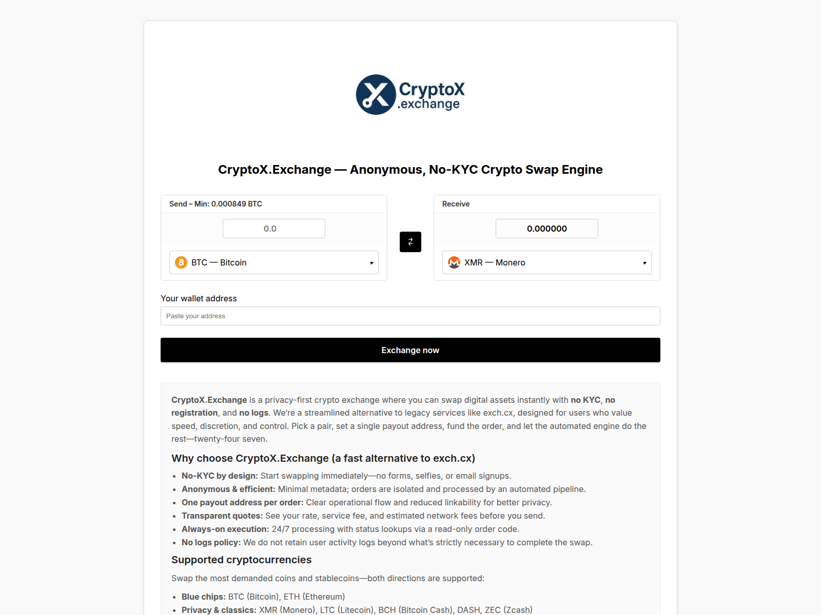 Domain Security & Threat Intelligence Report“CryptoX.Exchange — Anonymous Crypto Exchange (No-KYC), Alternative to exch.cx”