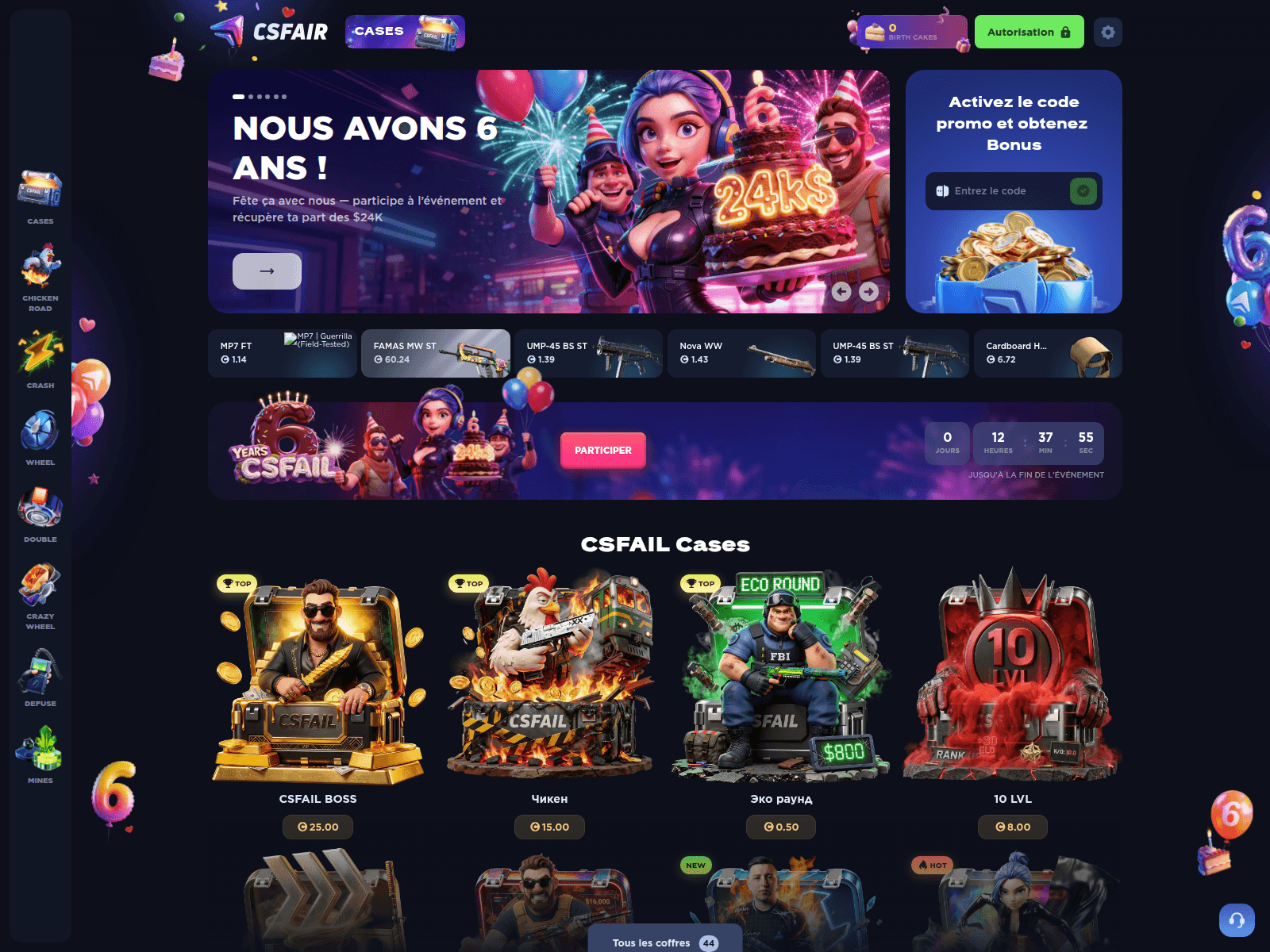 The site displays a page titled “CSFAIL â ÐÐ¸Ð´ÐµÑ ÑÑеди CS2/CS:GO игÑовÑÑ ÑайÑов”.