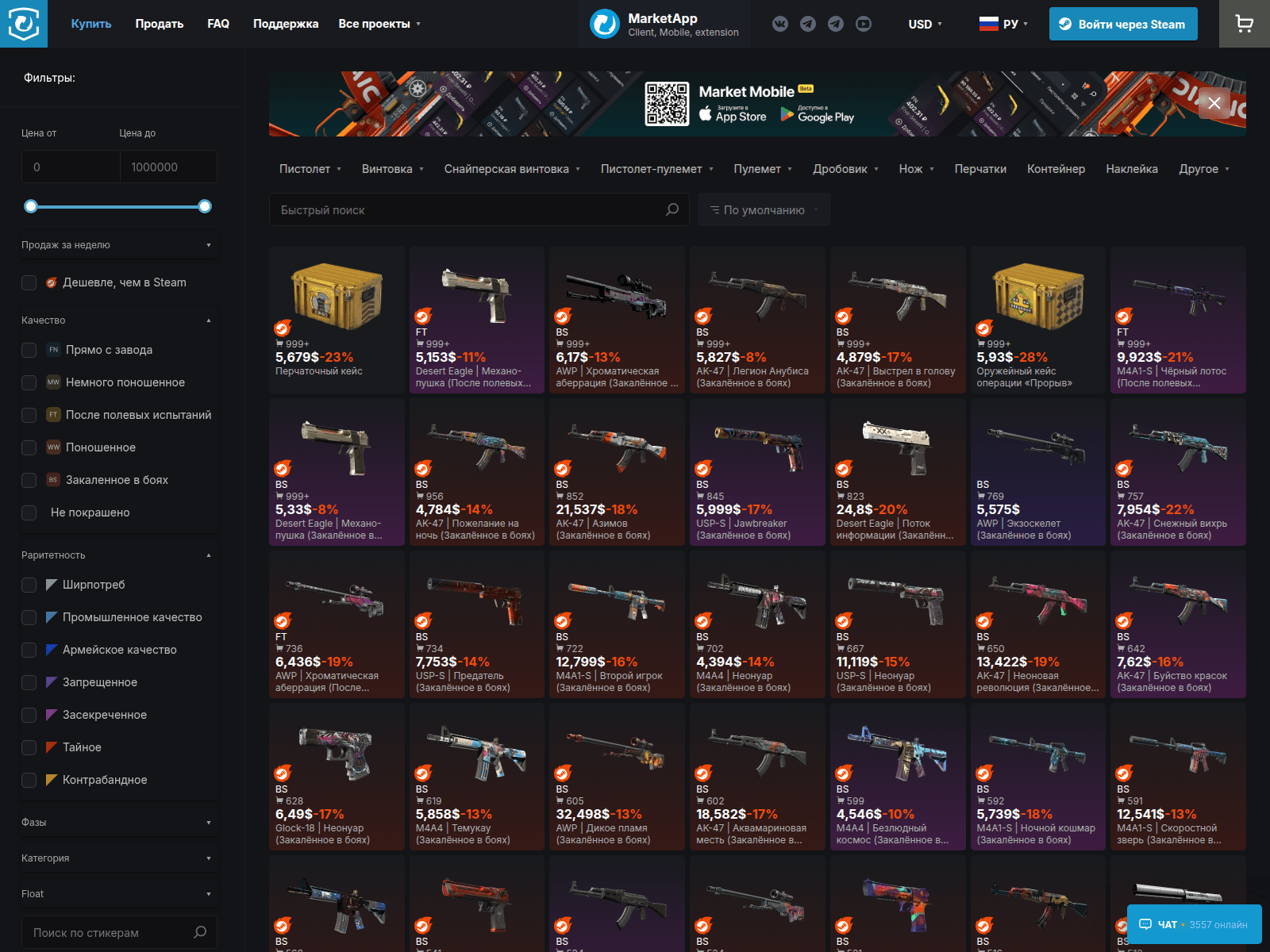 The site displays a page titled “CS:GO TM Market - ÐÑÑÑий CS2 ÐаÑÐºÐµÑ | Ñ 2013 Ðода — ÐгÑомнÑй ÐÑÐ...”.