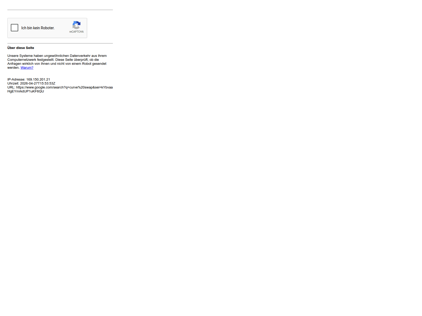 The site displays a page titled “Bevor Sie zur Google Suche weitergehen”, which may be designed to impersonate Curve.