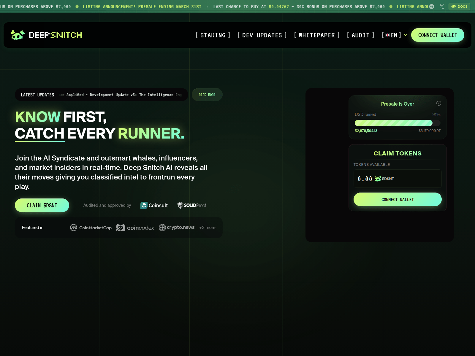 “DeepSnitch AI ($DSNT) Presale: AI Agents for On-Chain Crypto Alpha | Deep Sni...”