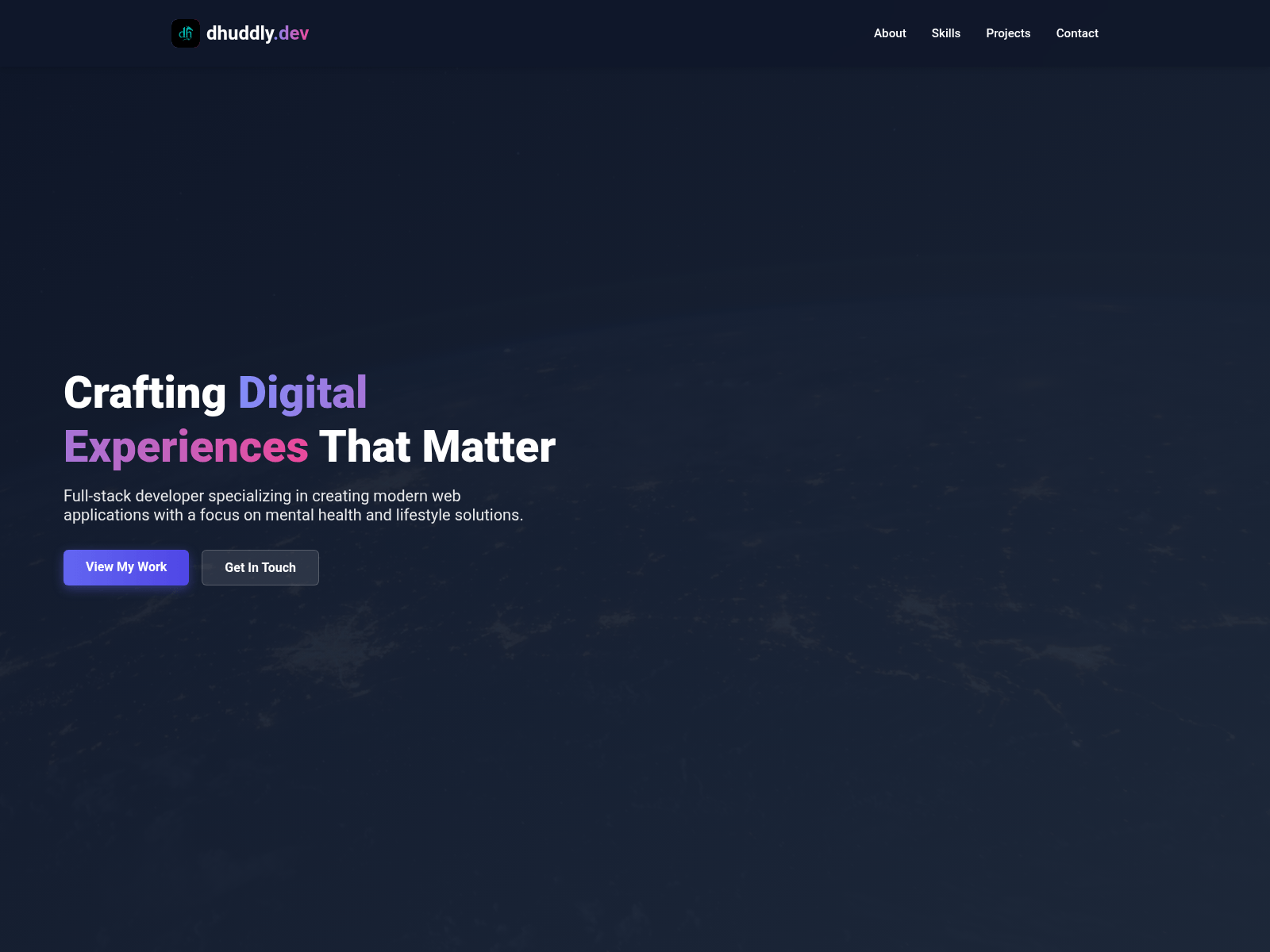 The site displays a page titled “dhuddly.dev | Creative Developer”.