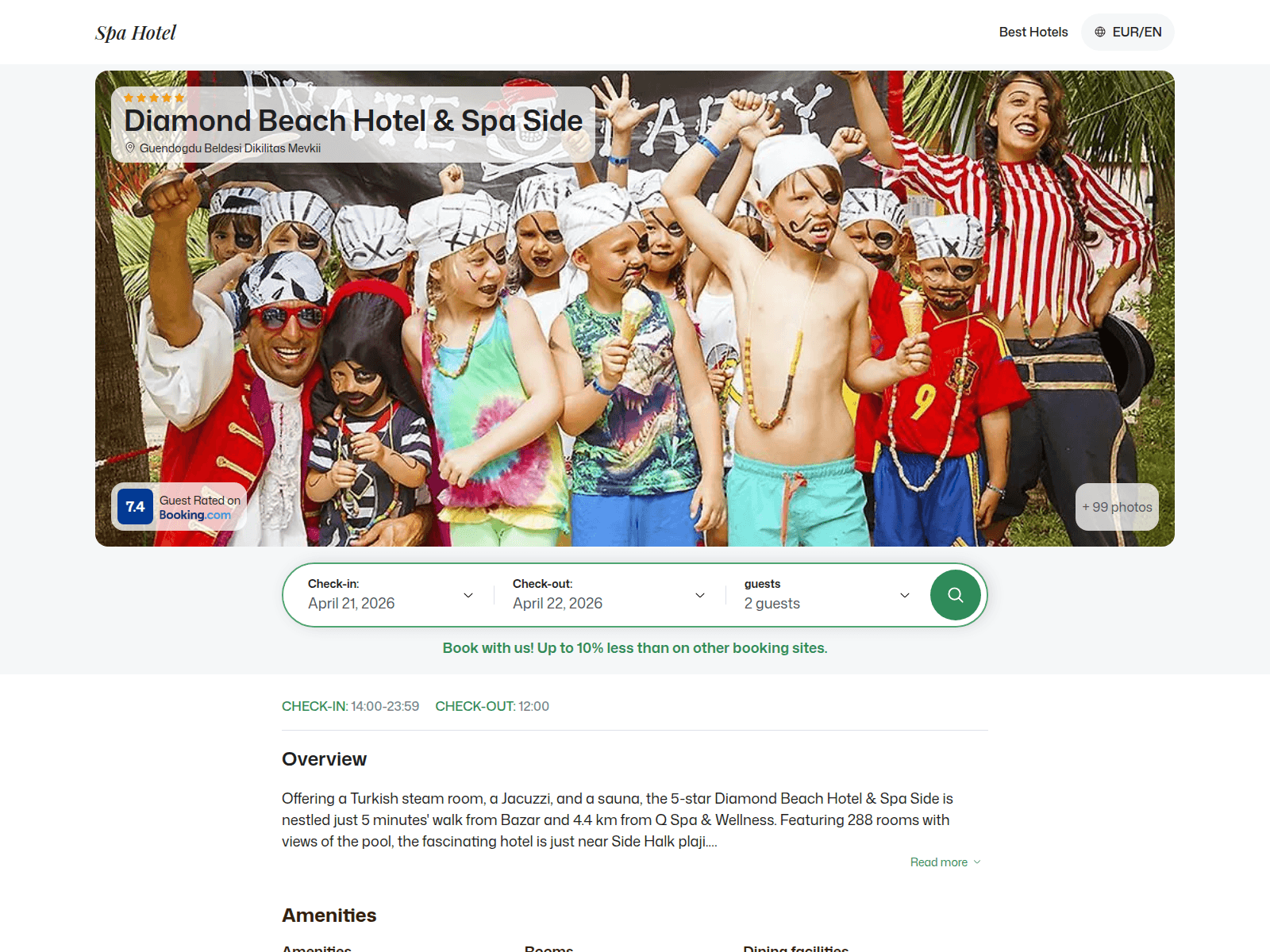 The site displays a page titled “Diamond Beach Hotel & Spa Side - Side, Turkey”.