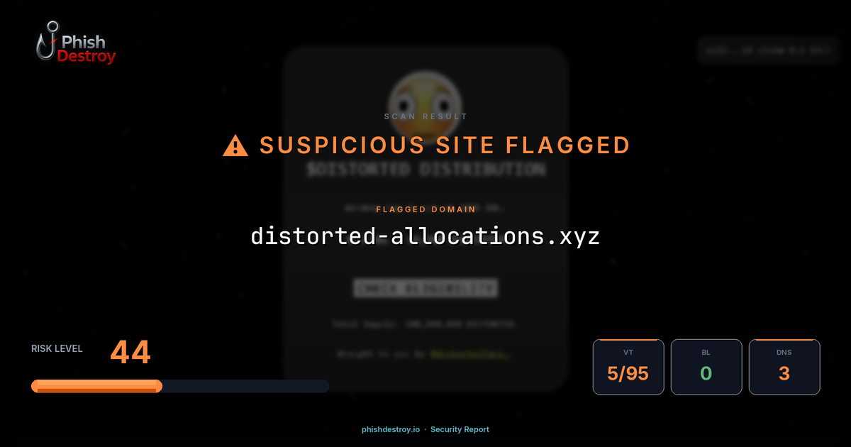 The domain distorted-allocations[.]xyz has been identified as a cryptocurrency phishing website. This malicious site targets Web3 users by mimicking legitimate crypto platforms to steal wallet credentials and digital assets.