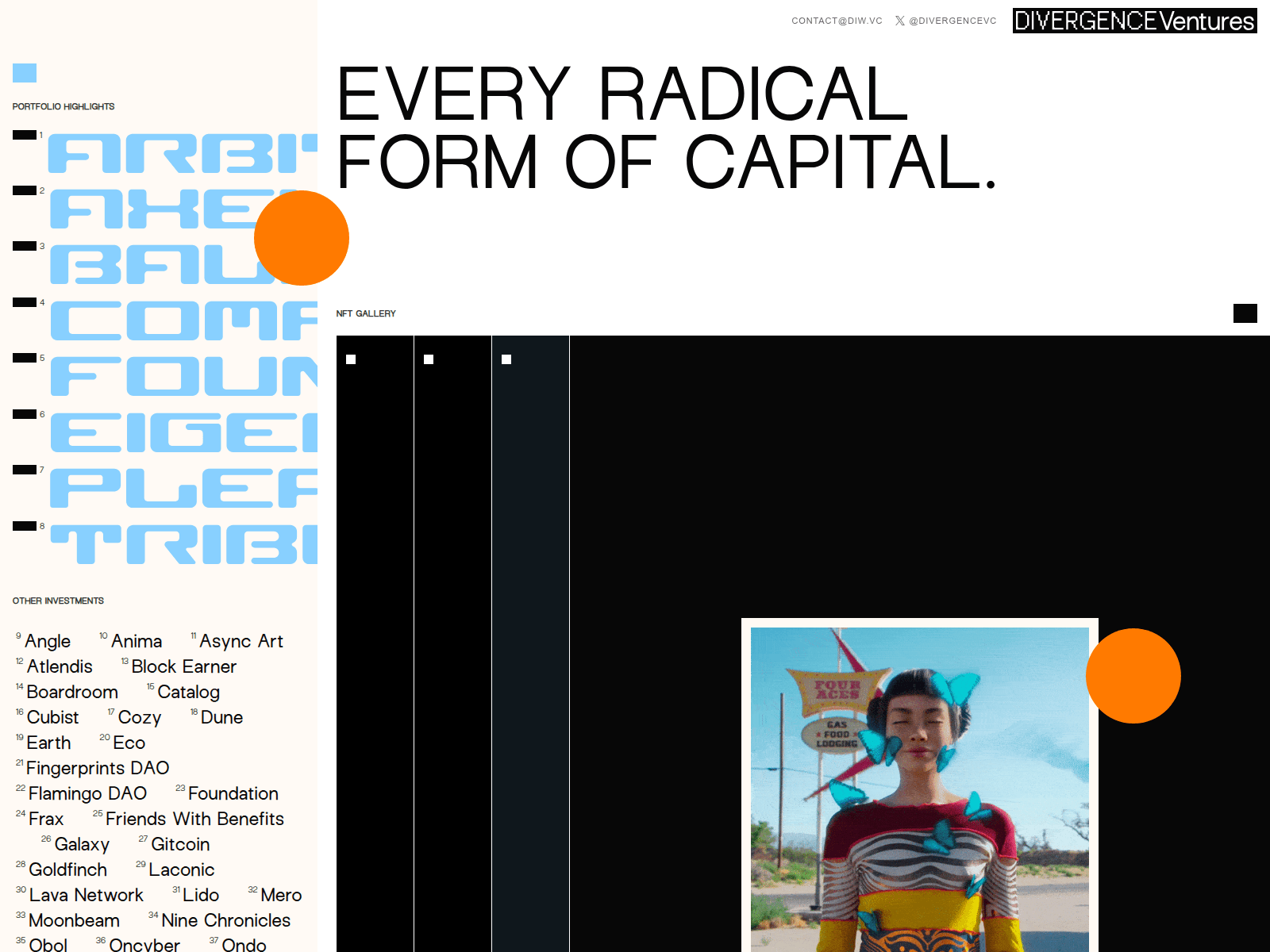 The site displays a page titled “Divergence Ventures”.