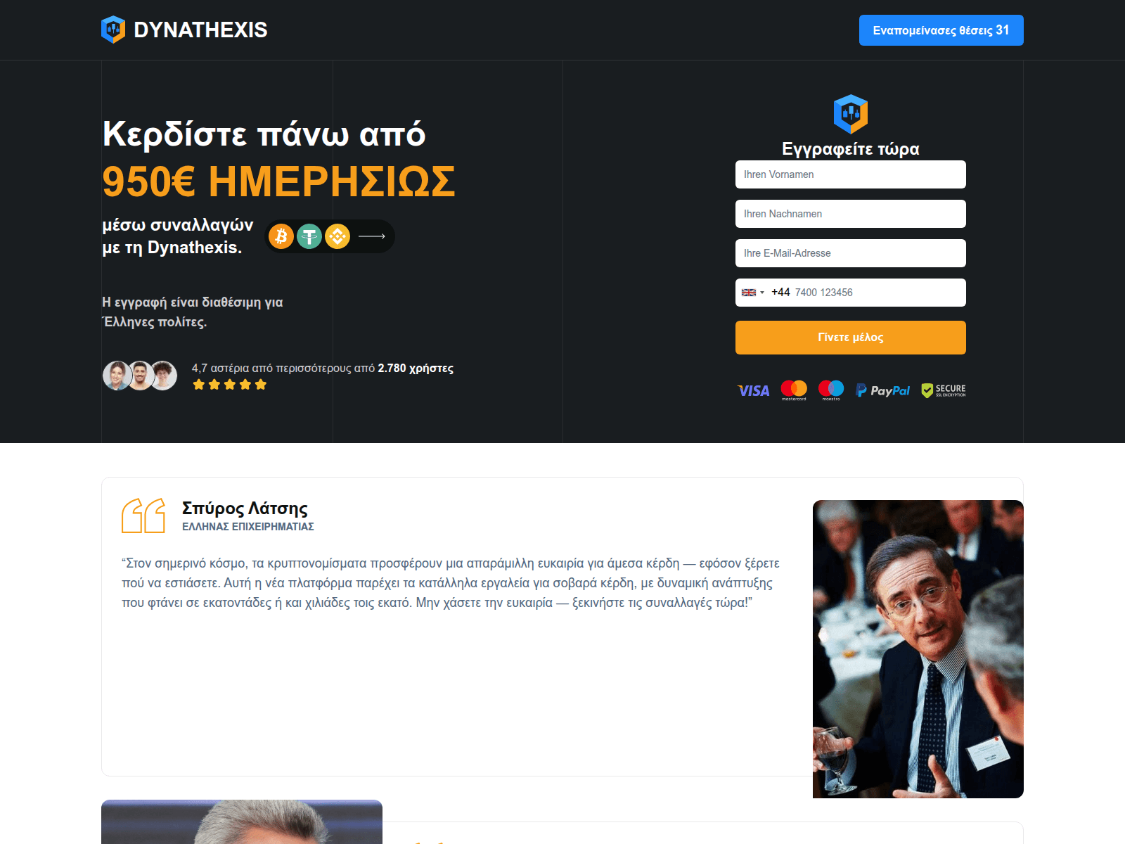 The site displays a page titled “Dynathexis | Επίσημος Ιστότοπος [2026]”.