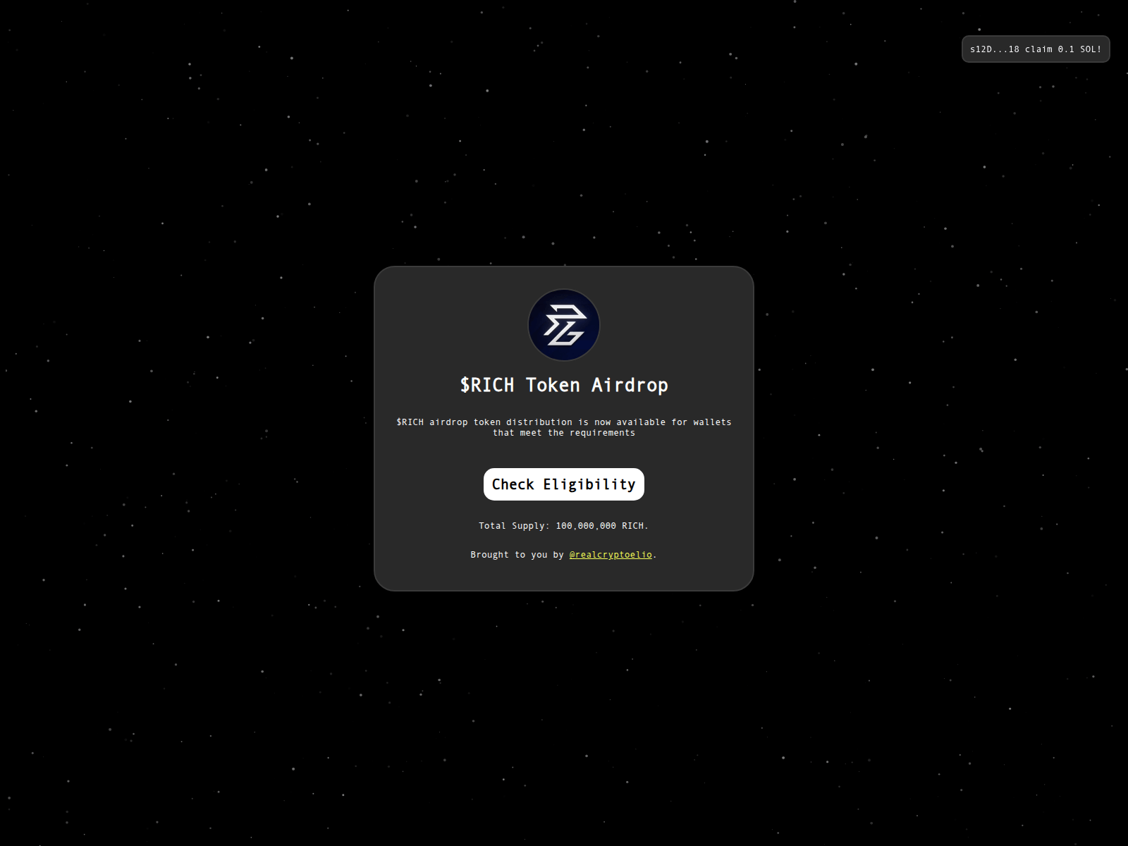 The site displays a page titled “$RICH Distribution”, which may be designed to impersonate coinbase.