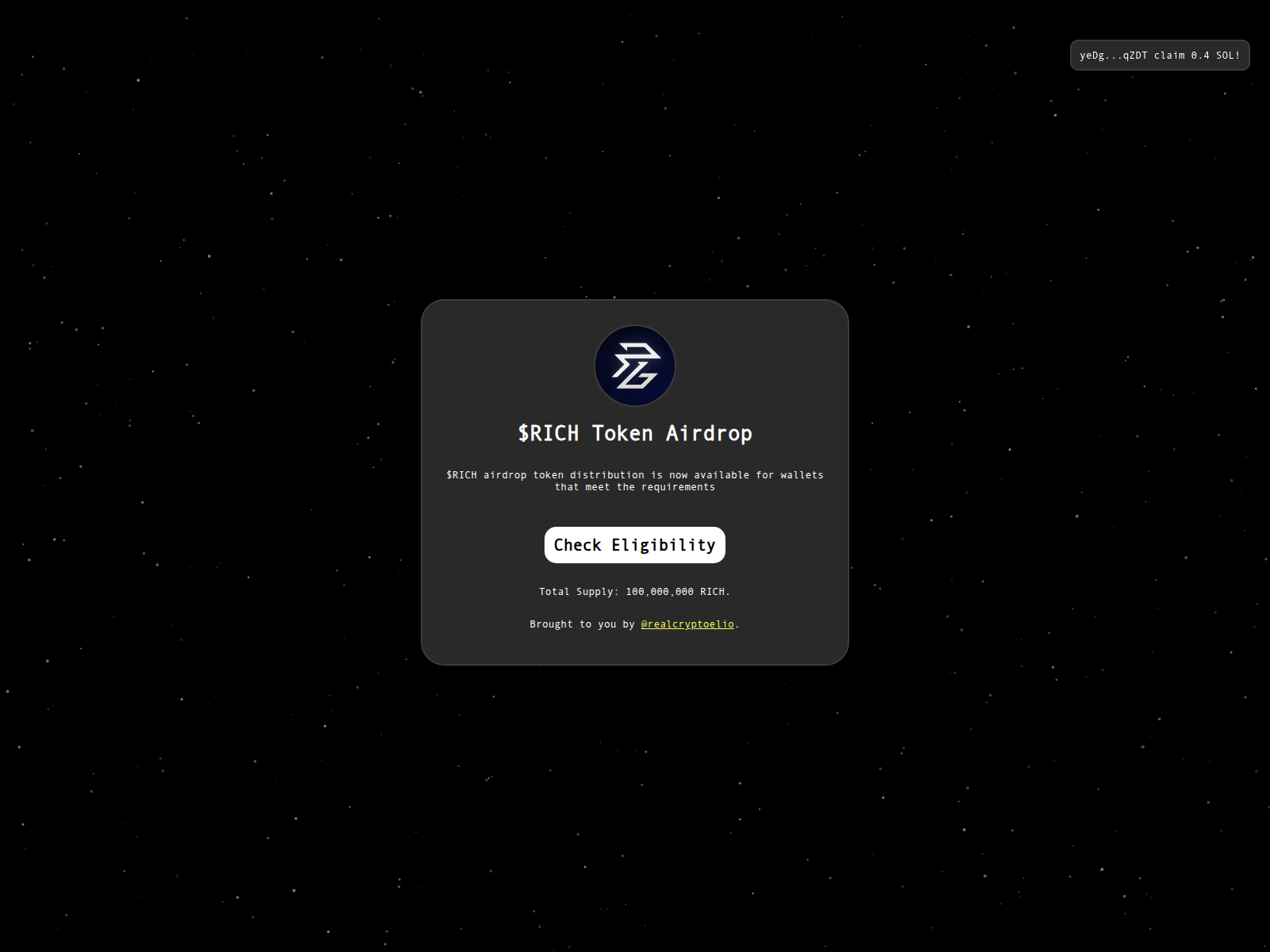The site displays a page titled “$RICH Distribution”, which may be designed to impersonate coinbase.