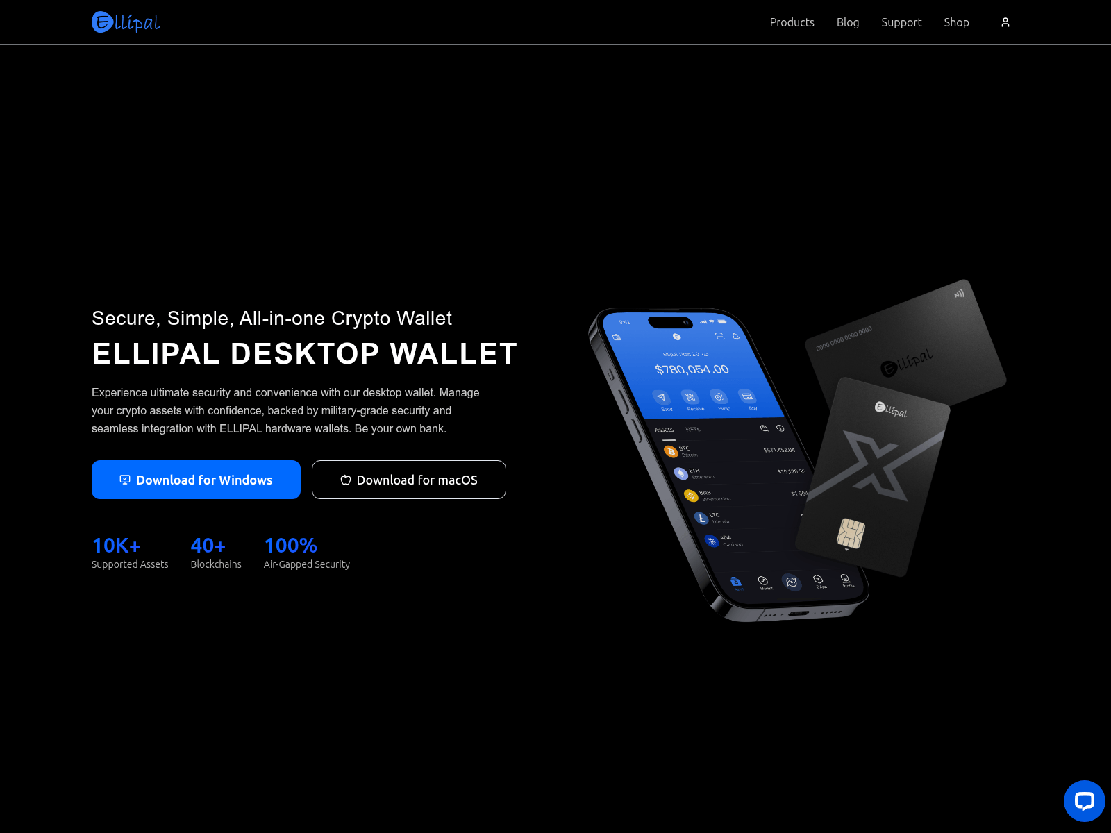 The site displays a page titled “ELLIPAL Desktop Wallet - Secure Cryptocurrency Wallet | Air-Gapped Cold Storage”.