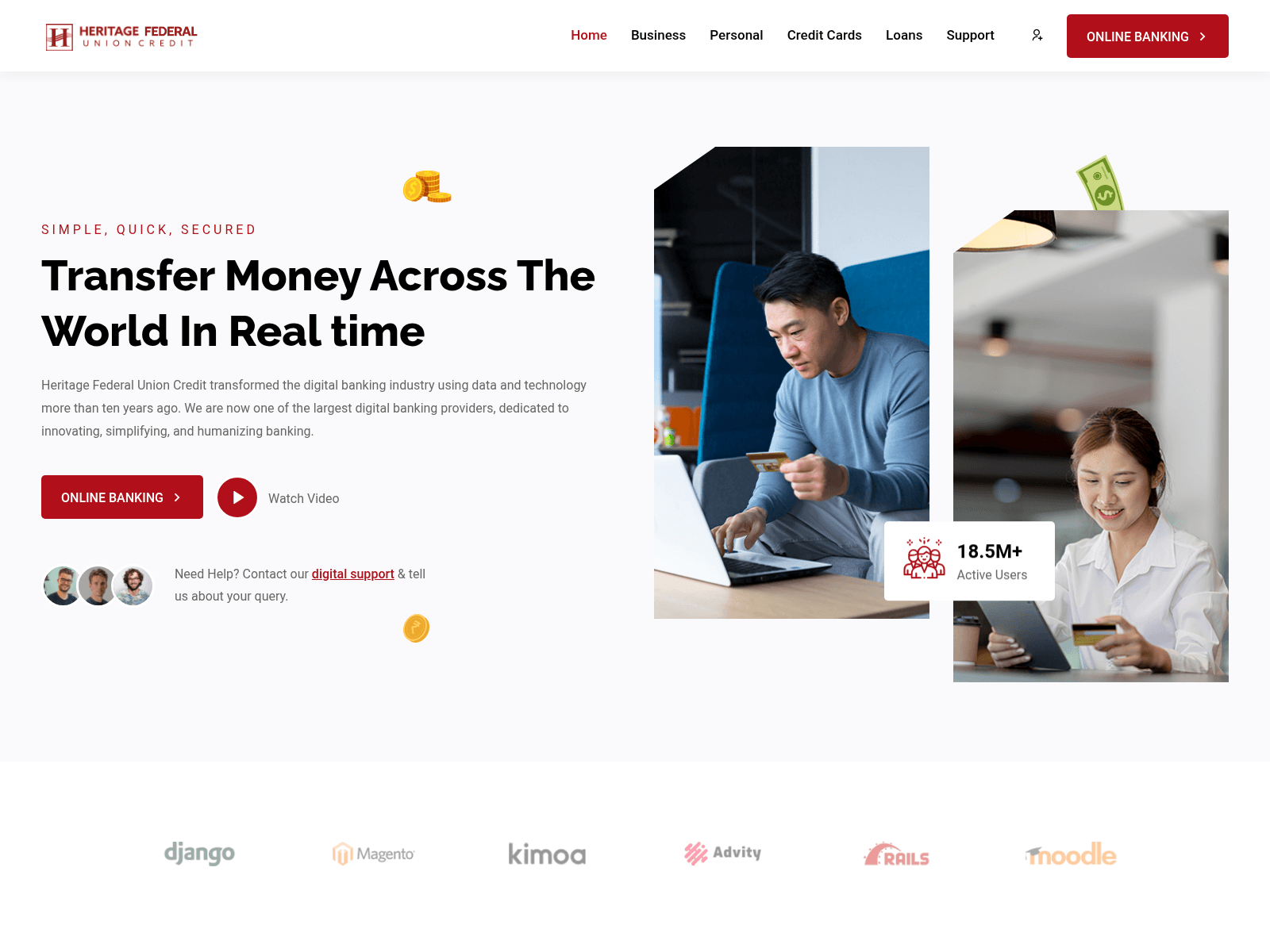 The site displays a page titled “Heritage Federal Union Credit - Dedicated to innovating, simplifying, and humanizing digital bank...”.
