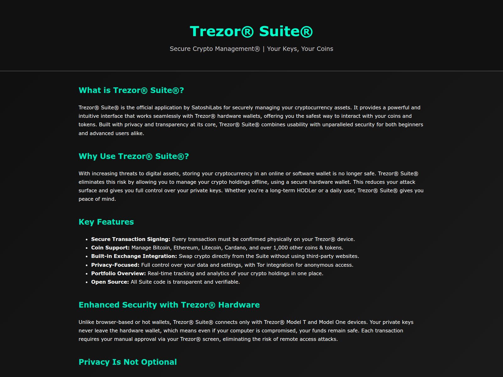“Trezor® Suite® | Secure Crypto Management®”