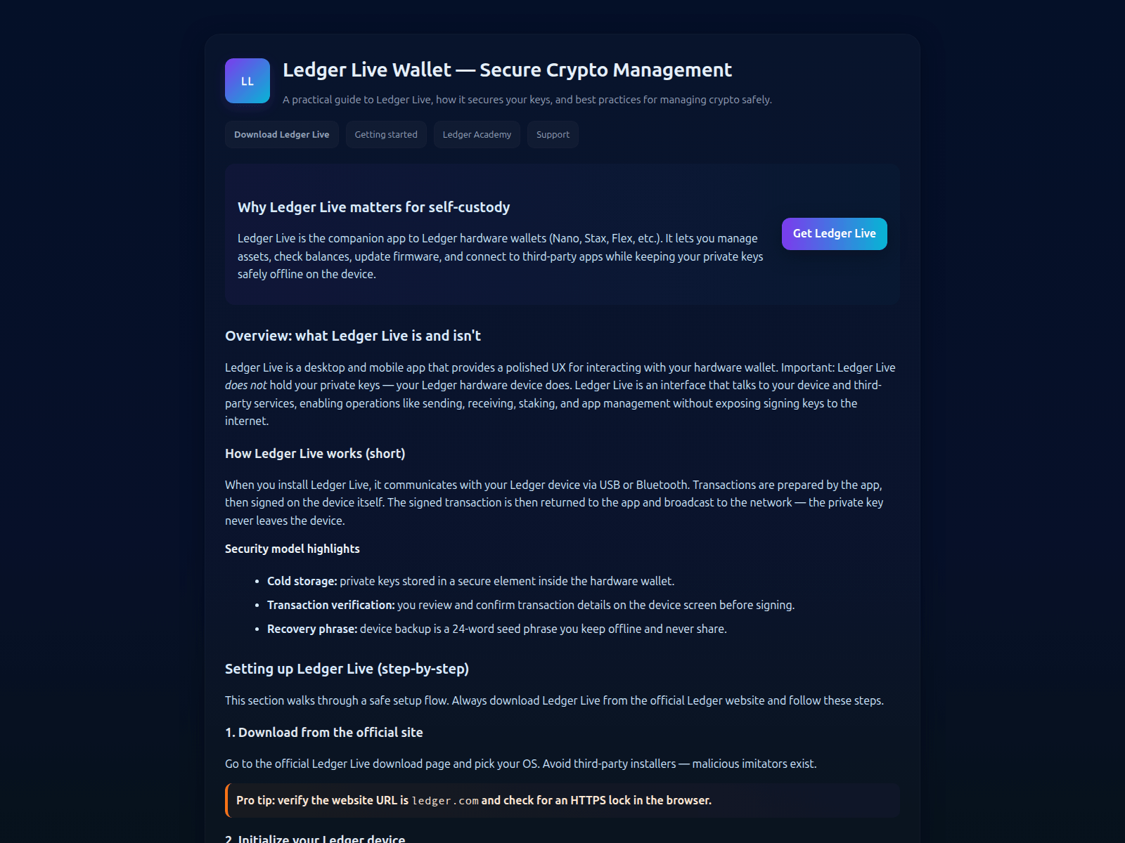 • Use a hardware wallet (Ledger, Trezor). Never store large amounts in browser wallets