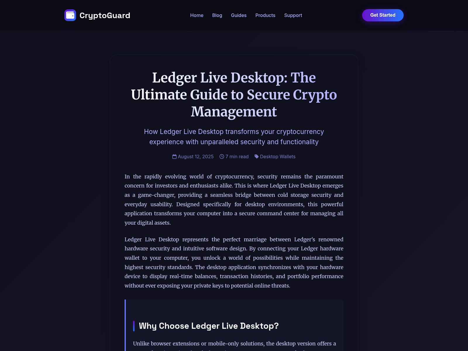 The site displays a page titled “CryptoGuard | Ledger Live Desktop Guide”, which may be designed to impersonate Ledger.