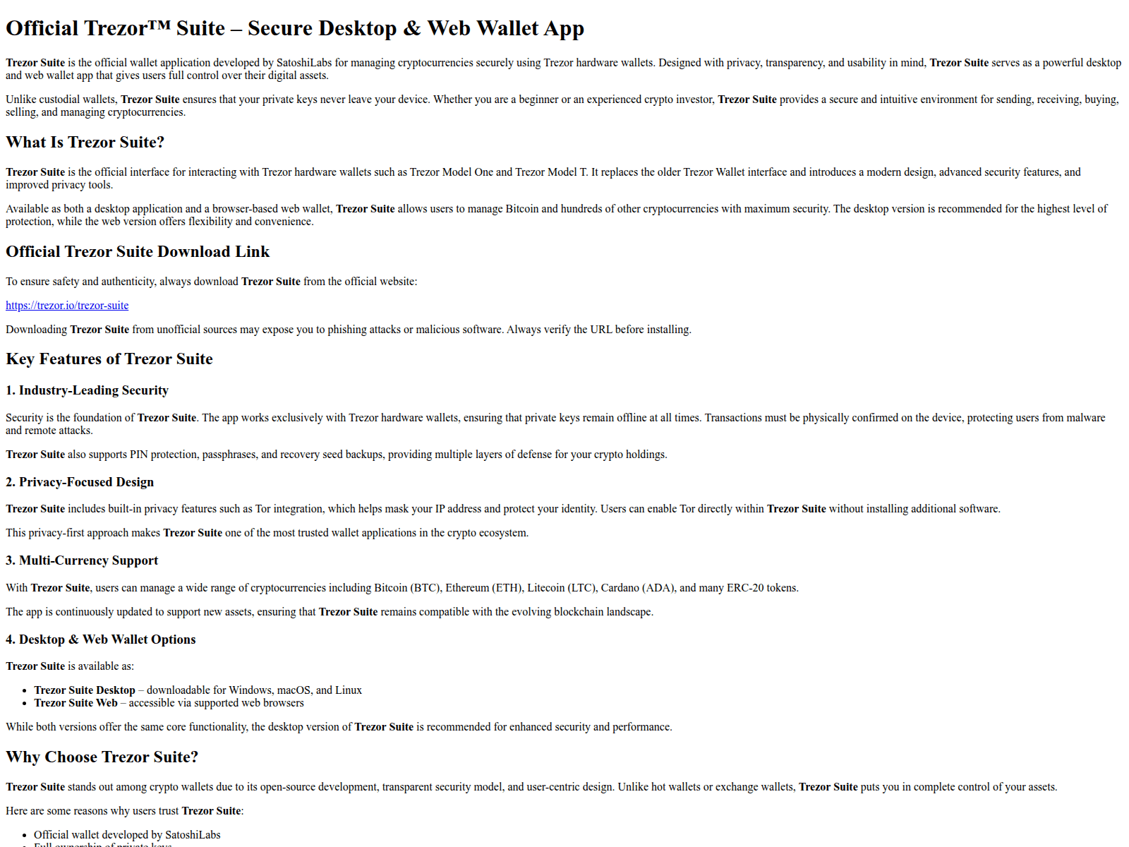 Domain Security & Threat Intelligence Report“Official Trezor™ Suite – Secure Desktop”