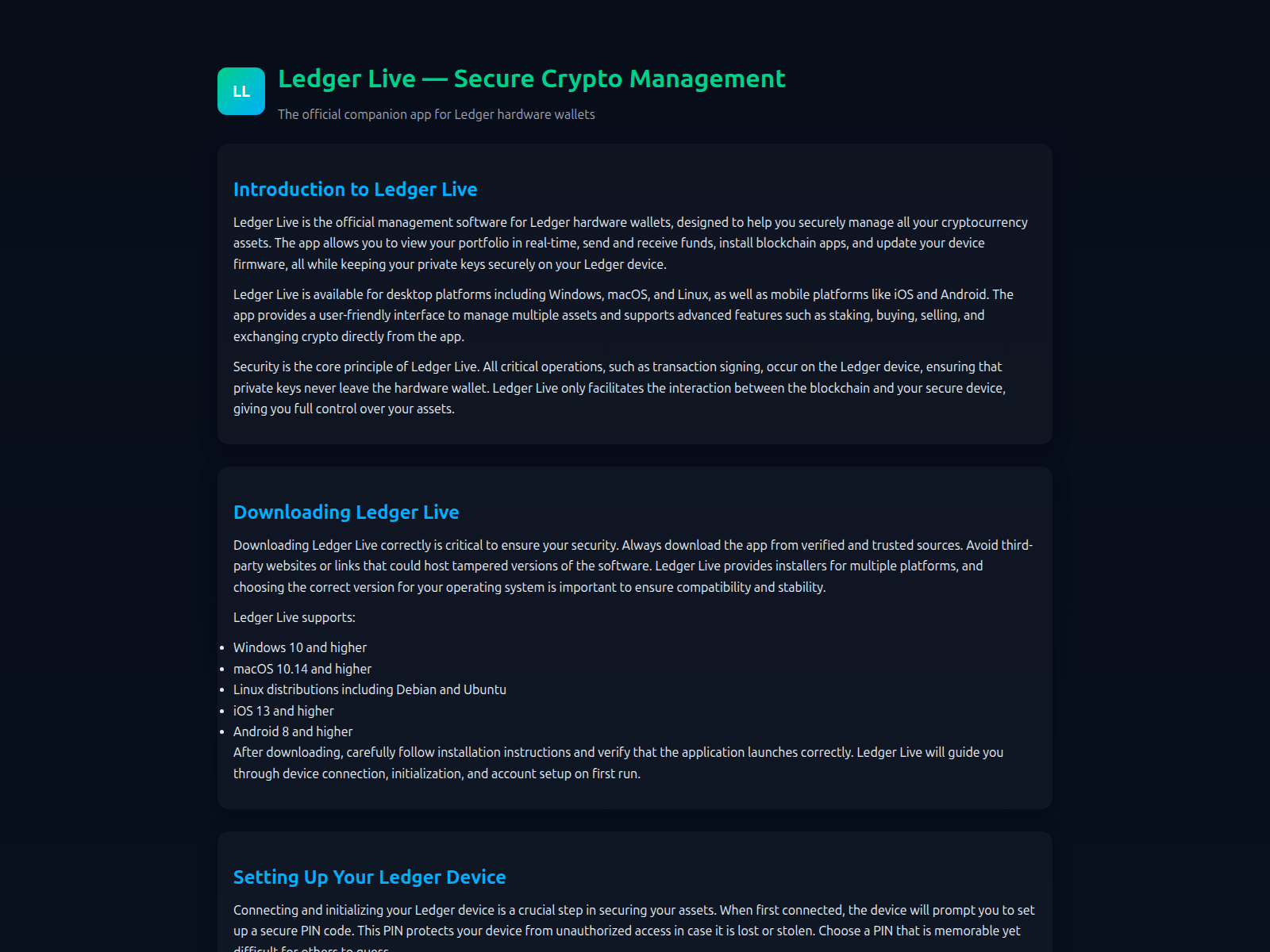 The site displays a page titled “Ledger® Live — Official Download & Guide”, which may be designed to impersonate Ledger.