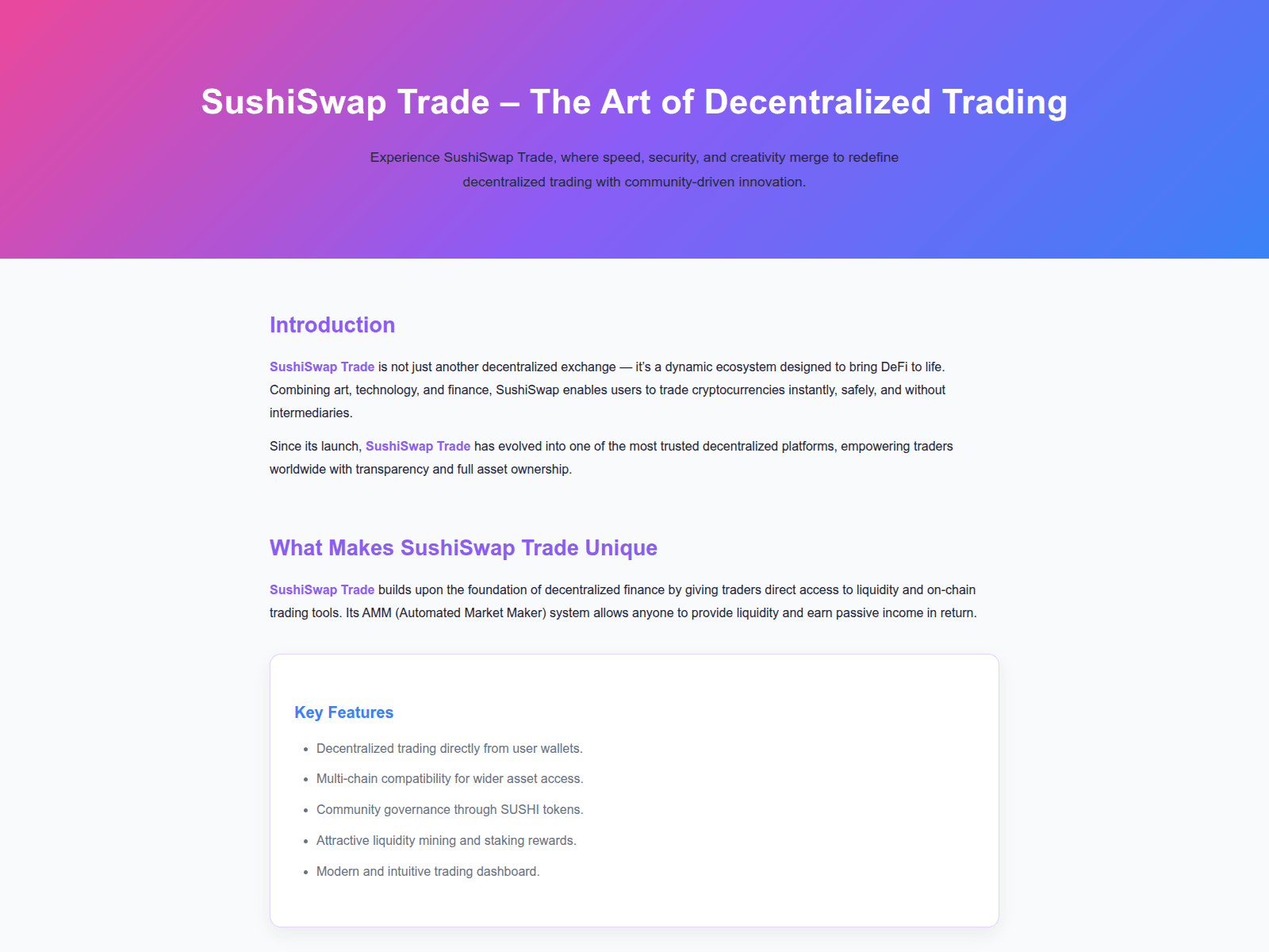 “SushiSwap Trade – The Art of Decentralized Trading”
