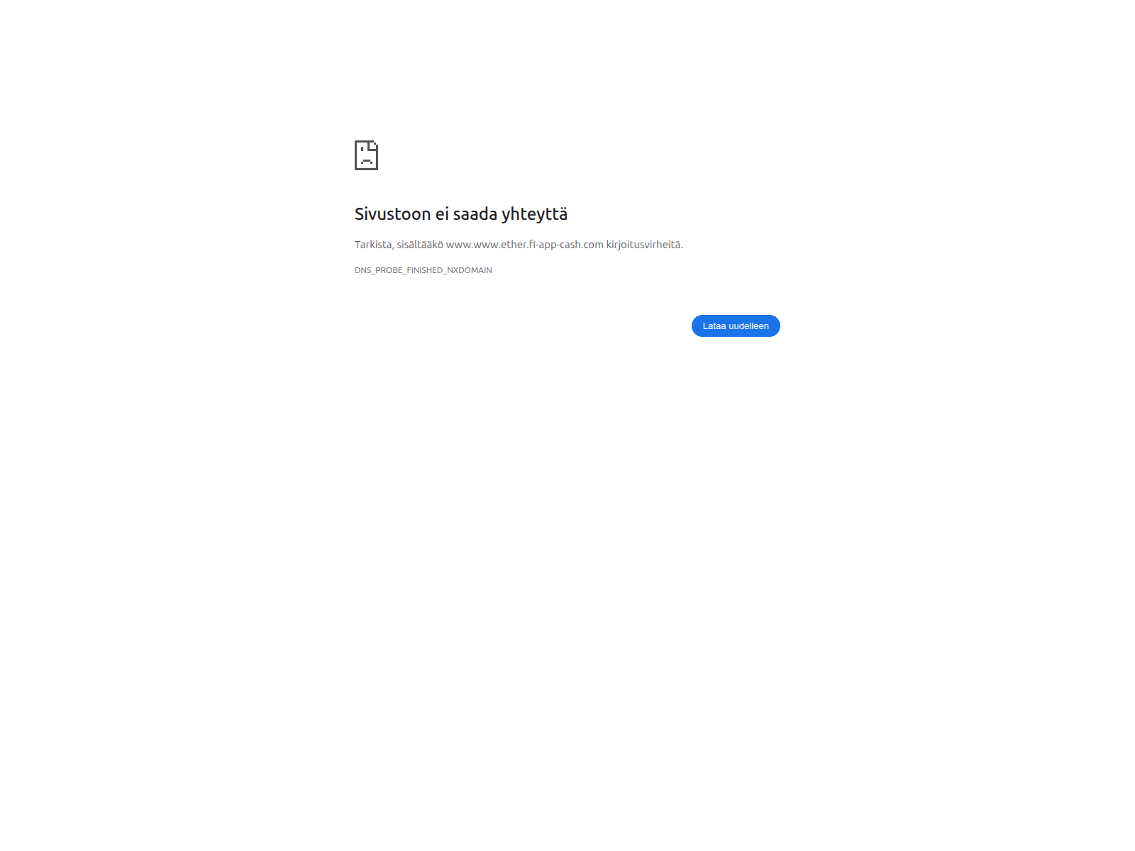 The domain ether[.]fi-app-cash[.]com was registered on February 21, 2026, via NiceNIC International Group Co., Limited. It was identified on three security blocklists, and VirusTotal flagged it with only 2 out of 95 security vendors, indicating minimal detection. The domain's web page returned a '404 Not Found' error when accessed, suggesting no active hosting or content at the time of review.