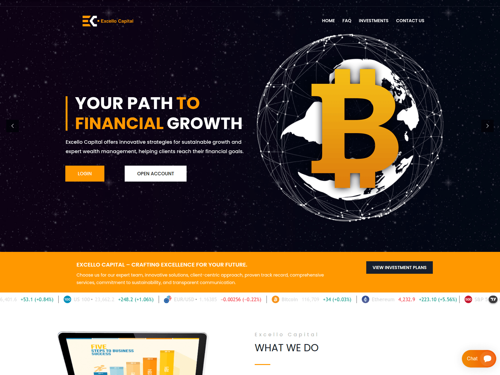 The site displays a page titled “Excello Capital | Turning Opportunities into Financial Growth.”.