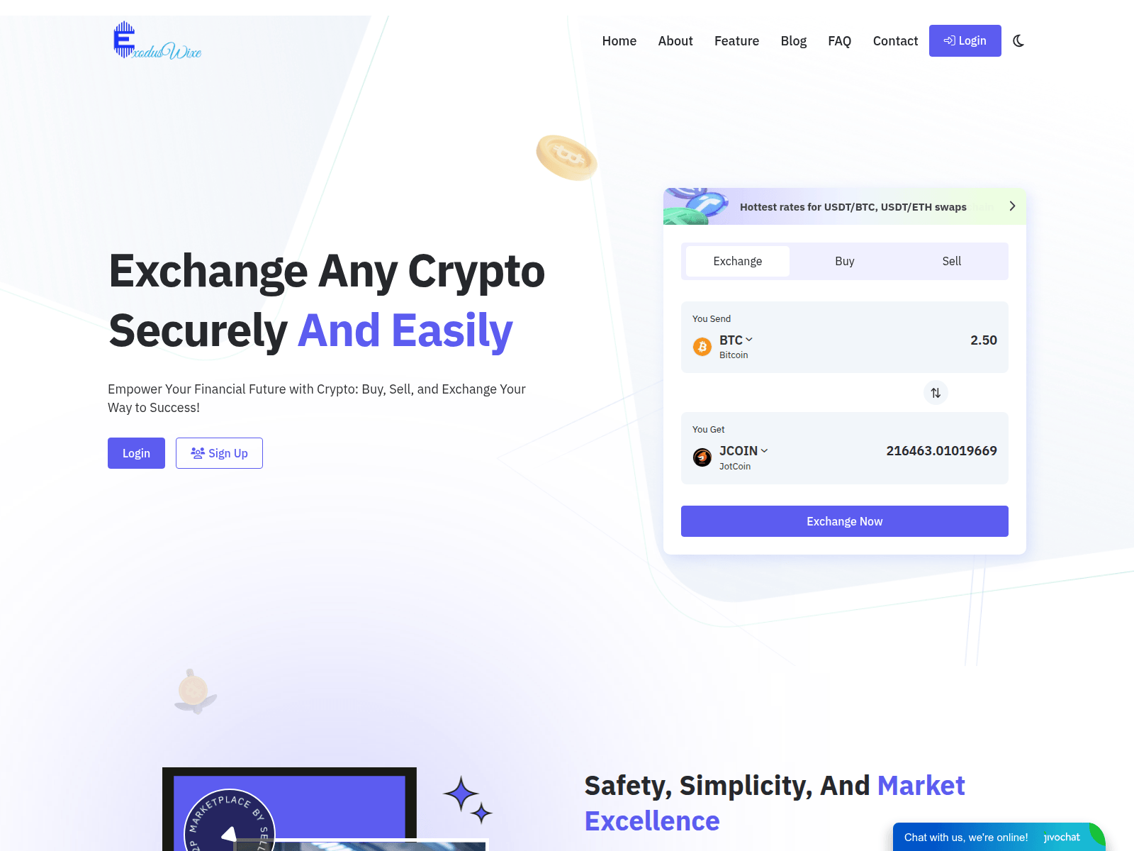 The site displays a page titled “ExodusWixe | Home”, which may be designed to impersonate Exodus.