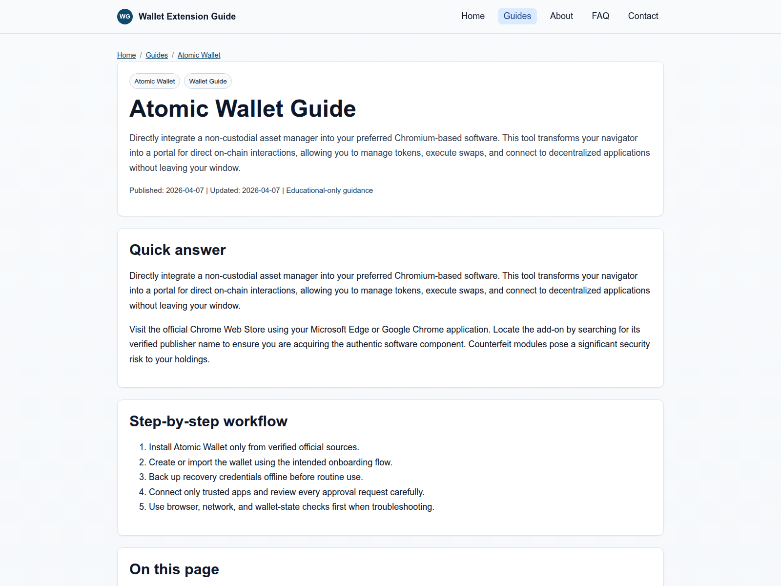 The site displays a page titled “Wallet Extension Guide | Wallet Extension Guide”.