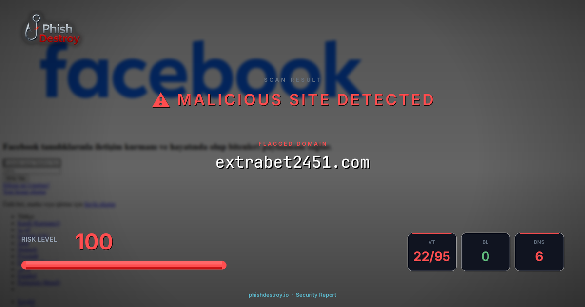 extrabet2451.com has been flagged by 22 security vendors as of March 17, 2026.