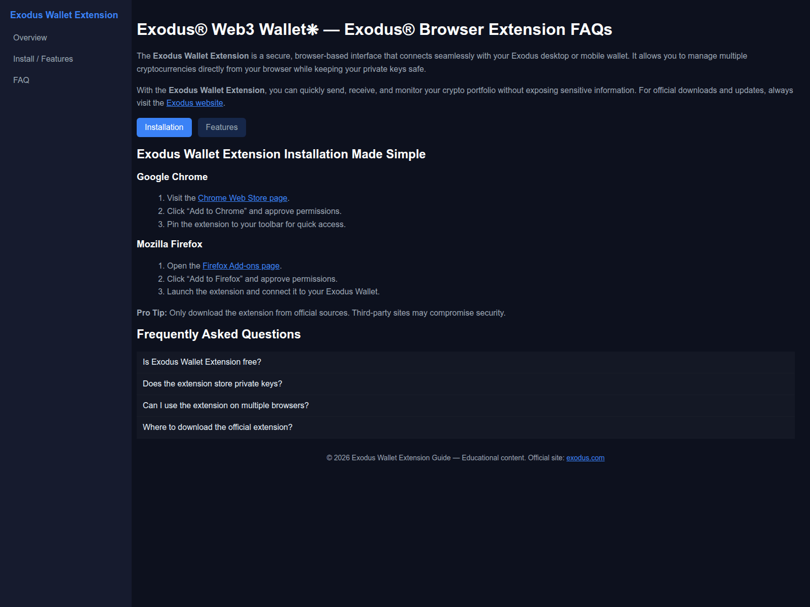 Domain Security & Threat Intelligence Report“Exodus® Web3 Wallet⁕ — Exodus® Browser Extension FAQs”