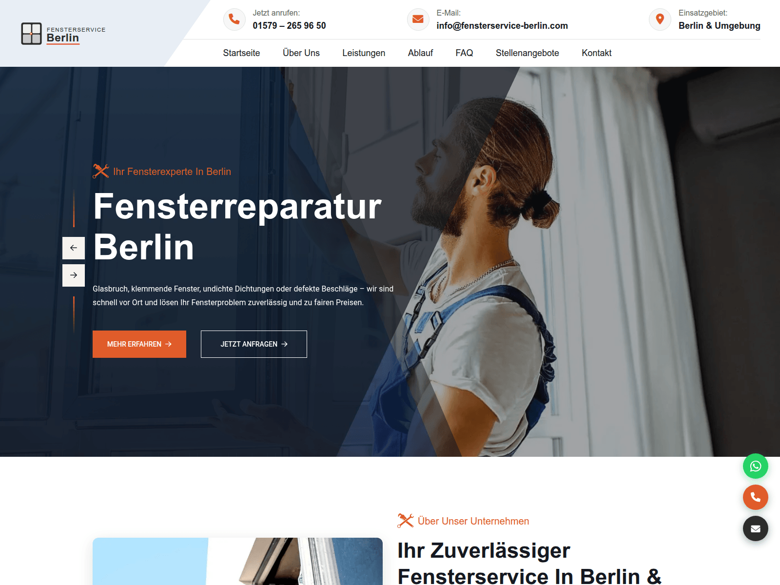 The site displays a page titled “Fensterreparatur Berlin | Fensterservice Berlin”.