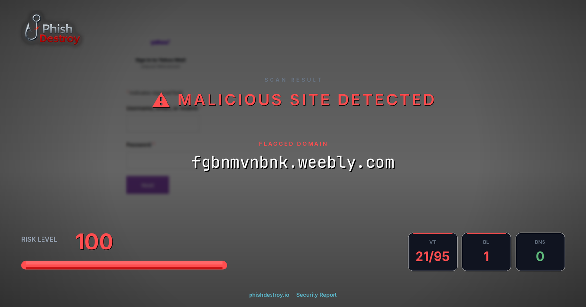 fgbnmvnbnk.weebly.com has been flagged by 21 security vendors as of March 15, 2026.