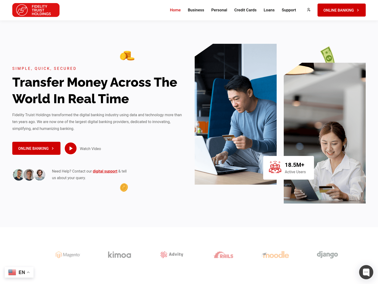 The site displays a page titled “Fidelity Truist Holdings - Dedicated to innovating, simplifying, and humanizing digital banking.”.