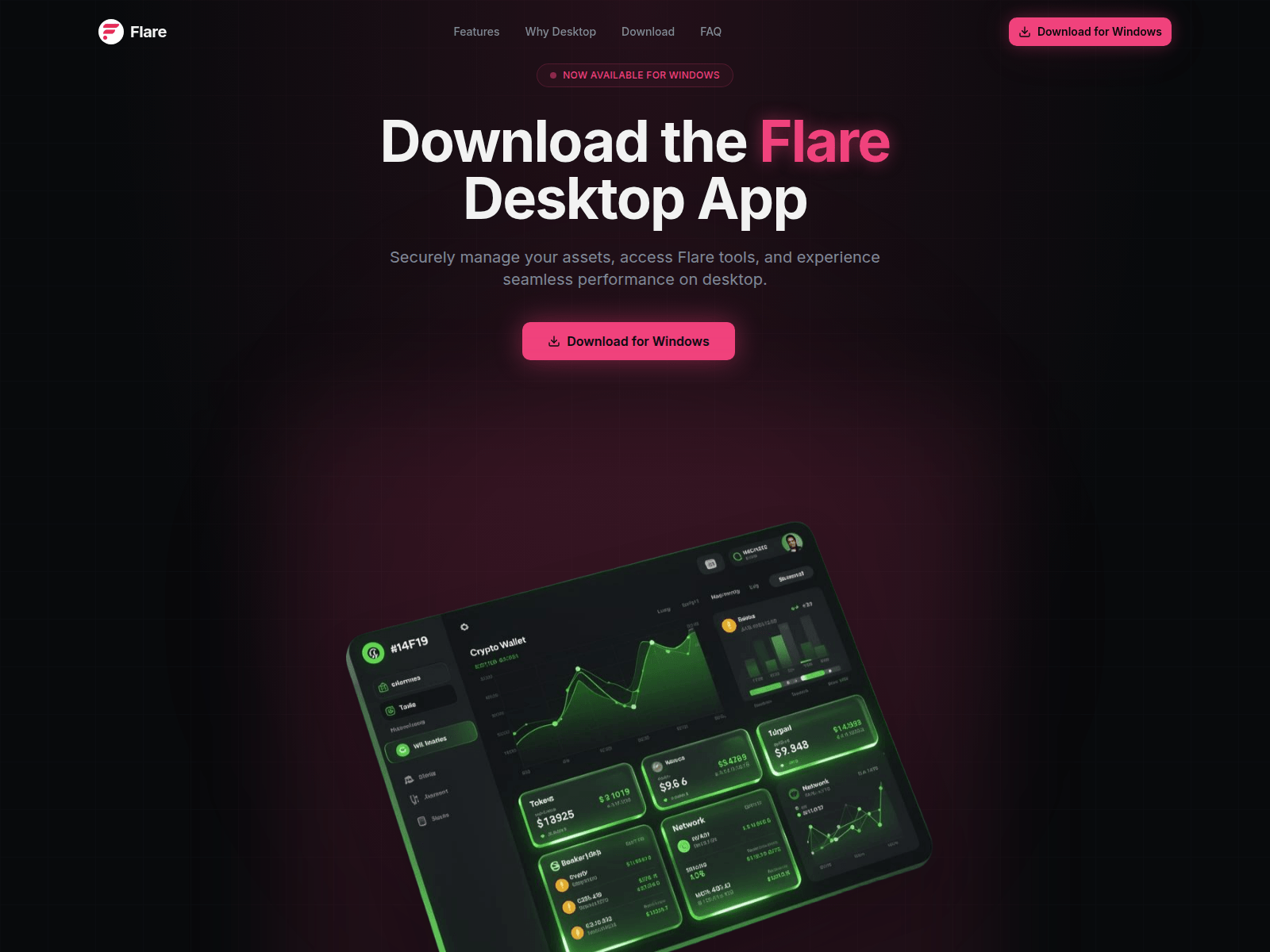 The site displays a page titled “Flare Desktop App – Download for Windows”.