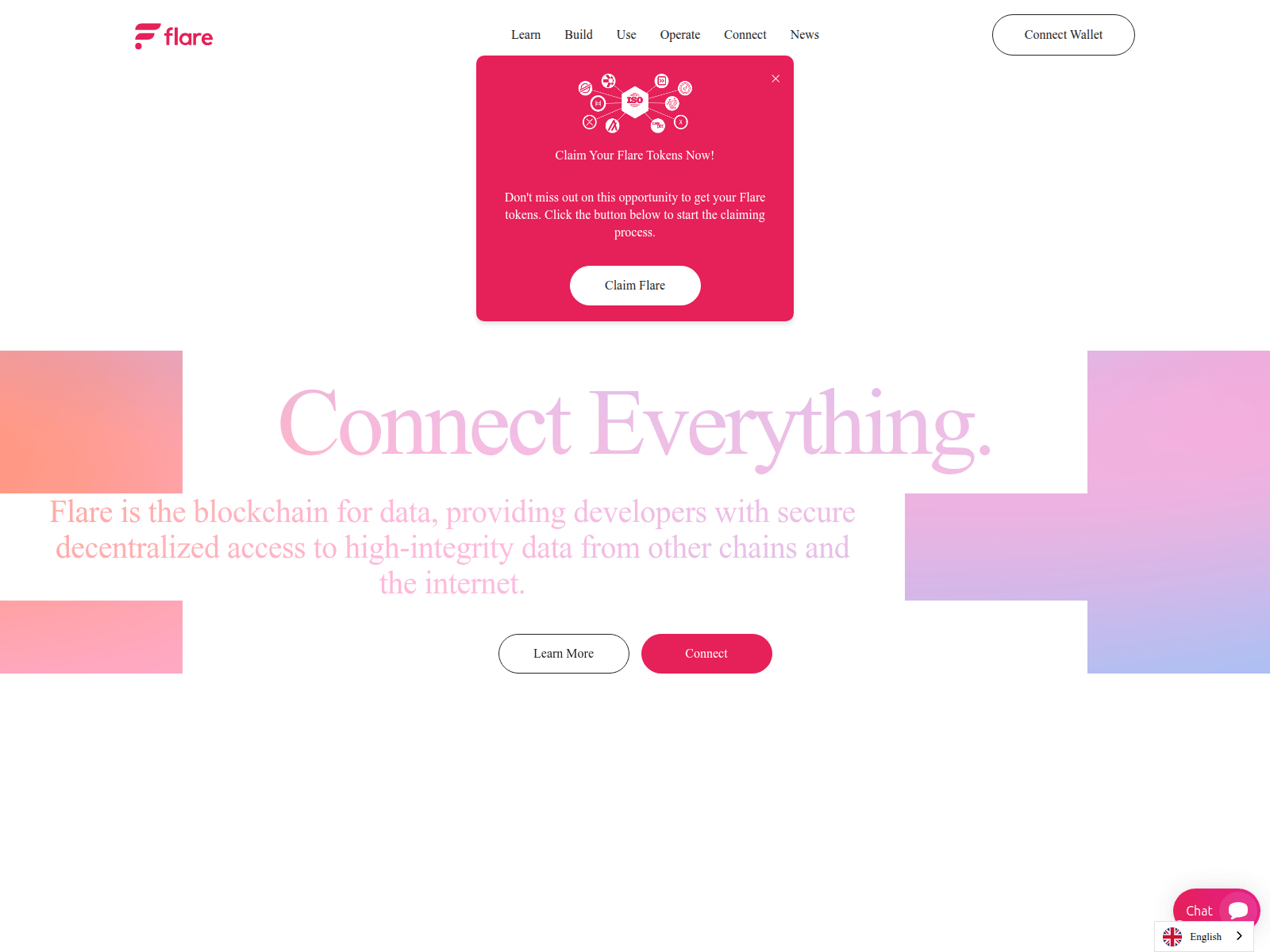 The site displays a page titled “Flare is the blockchain for data”, which may be designed to impersonate Coinbase.