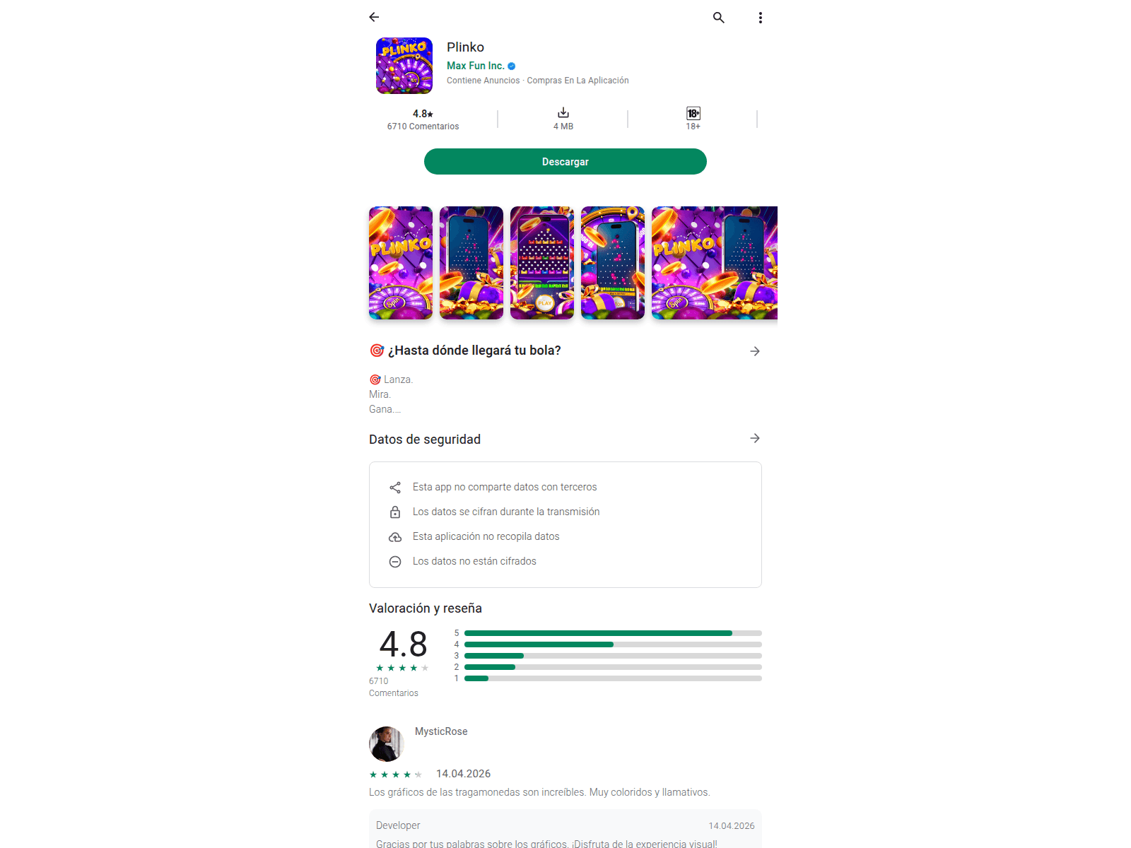 The site displays a page titled “Plinko”.