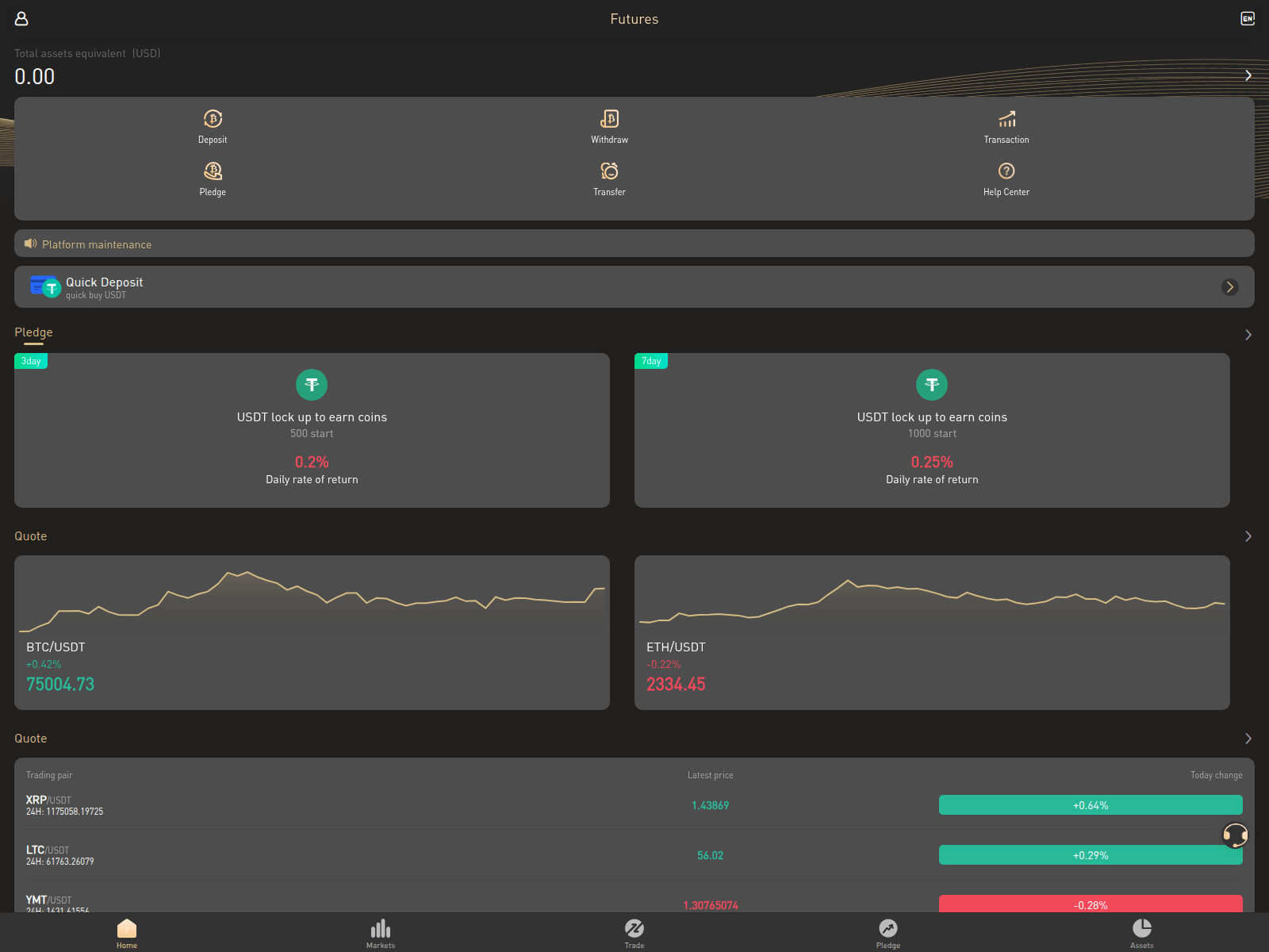 The site displays a page titled “Futures”.