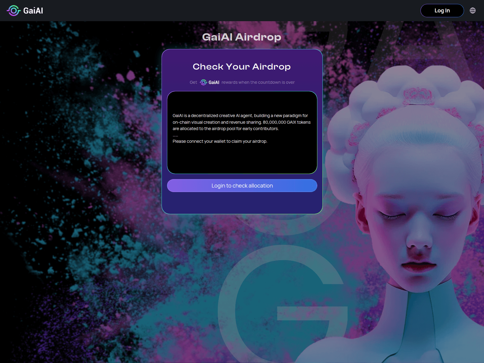 The site displays a page titled “GaiAI: First DeAI Knowledge Service Layer”.