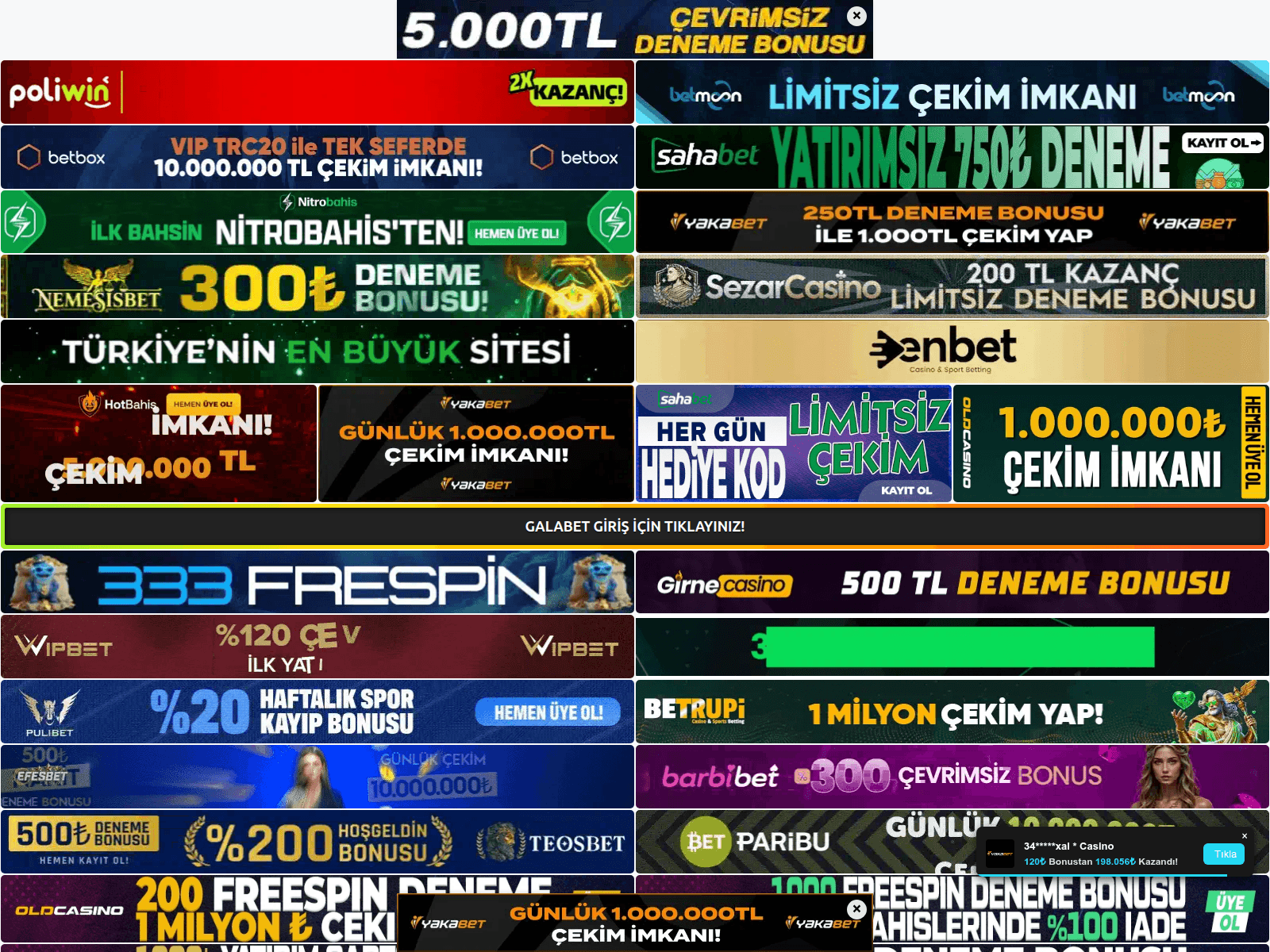 The site displays a page titled “Galabet Freebet, Galabet Freespin - Galabet Promosyonları”.