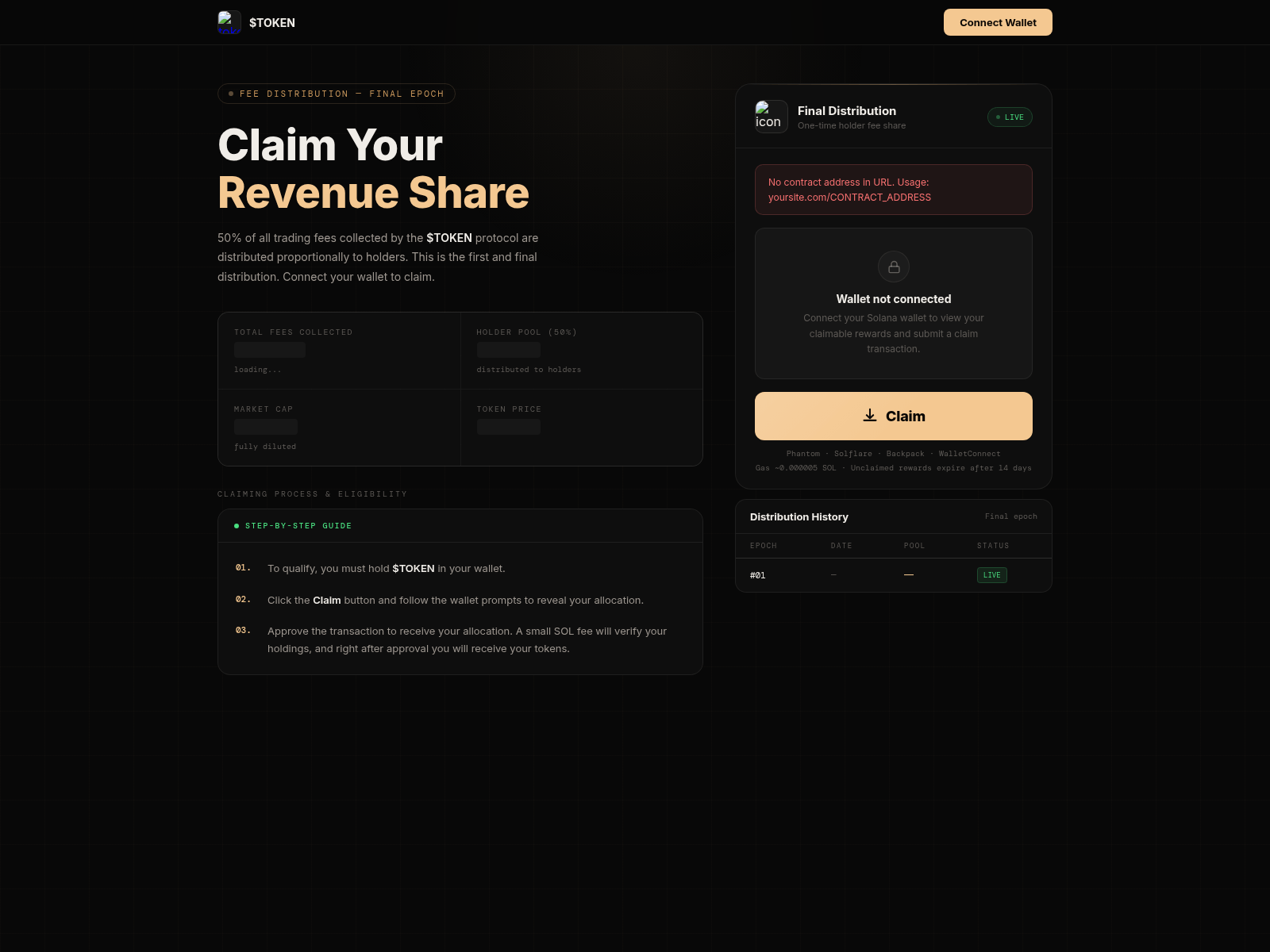 The site displays a page titled “Fee Distribution”.