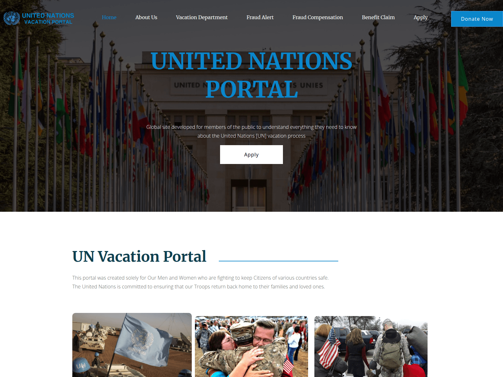 The site displays a page titled “Home - United Nations”, which may be designed to impersonate Aave.