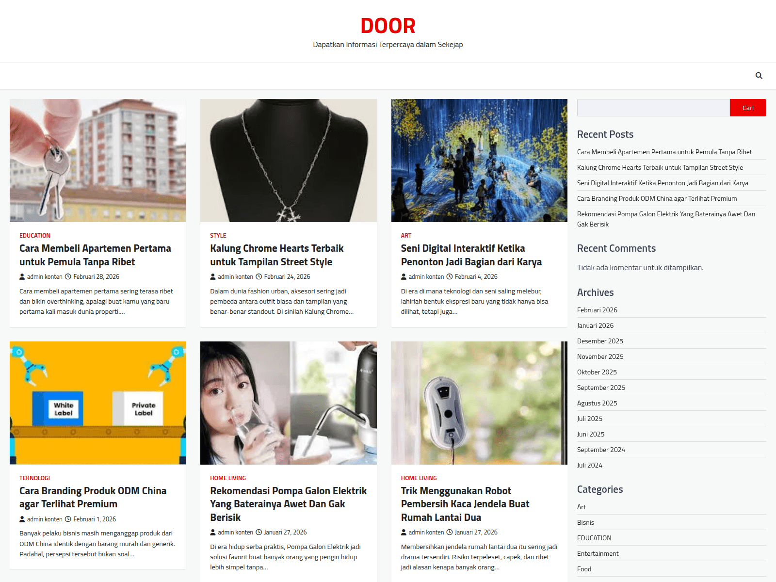 The site displays a page titled “DOOR - Dapatkan Informasi Terpercaya dalam Sekejap”.