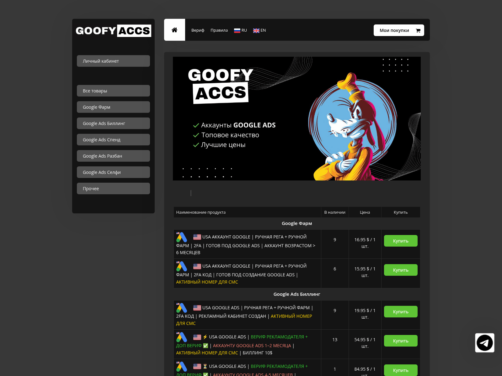 goofy-accs.com) - Communications — emails, texts, phone numbers, usernames the scammer used