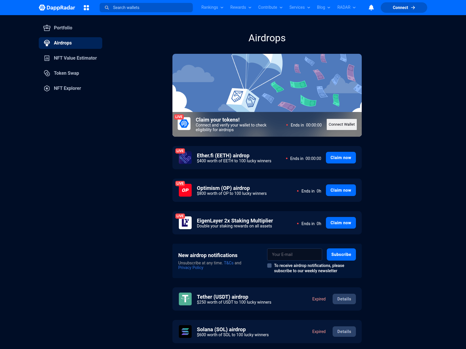 Domain Security & Threat Intelligence Report“Airdrops - Get free crypto tokens | DappRadar”