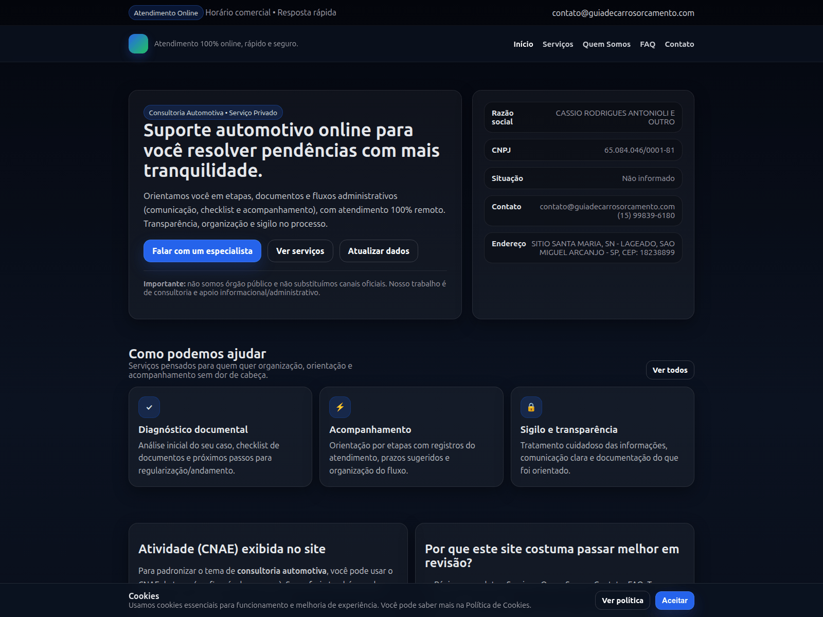 guiadecarrosorcamento.com) - Communications — emails, texts, phone numbers, usernames the scammer used